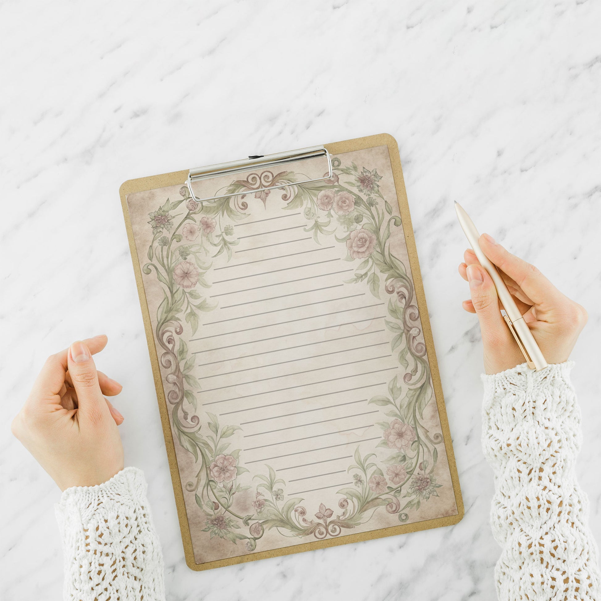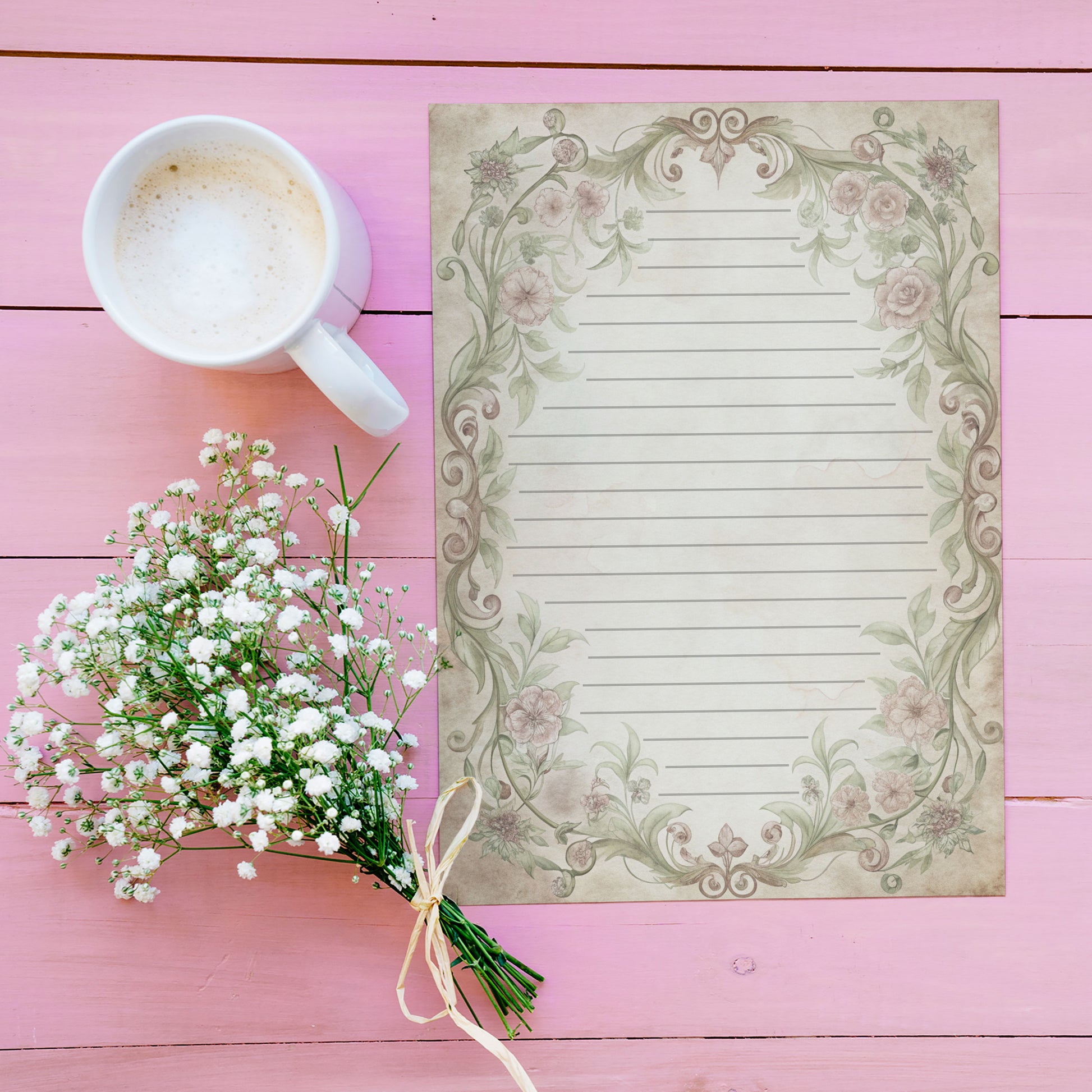10-pack Brevpapper - Sagobok sida Blommig Baroque - Tryckt A5 Papper - WP525