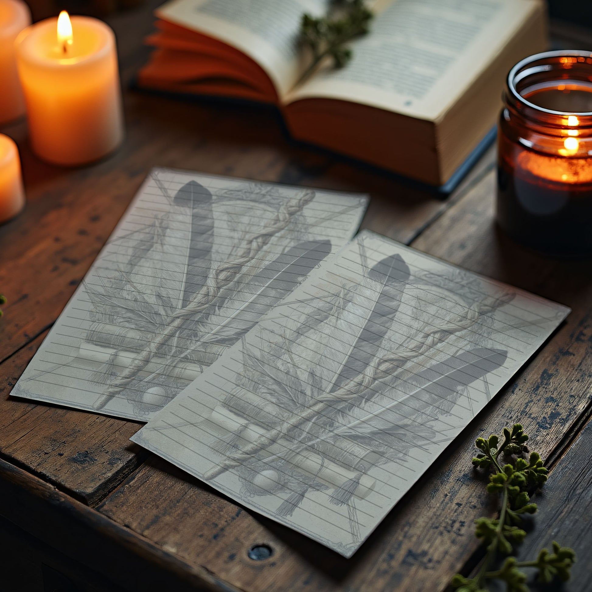 10-pack Brevpapper - Vintage Trollstav och Fjärdrar Dark Academia Grimoire / Book of Shadows Sidor - Tryckt A5 Papper - GP120