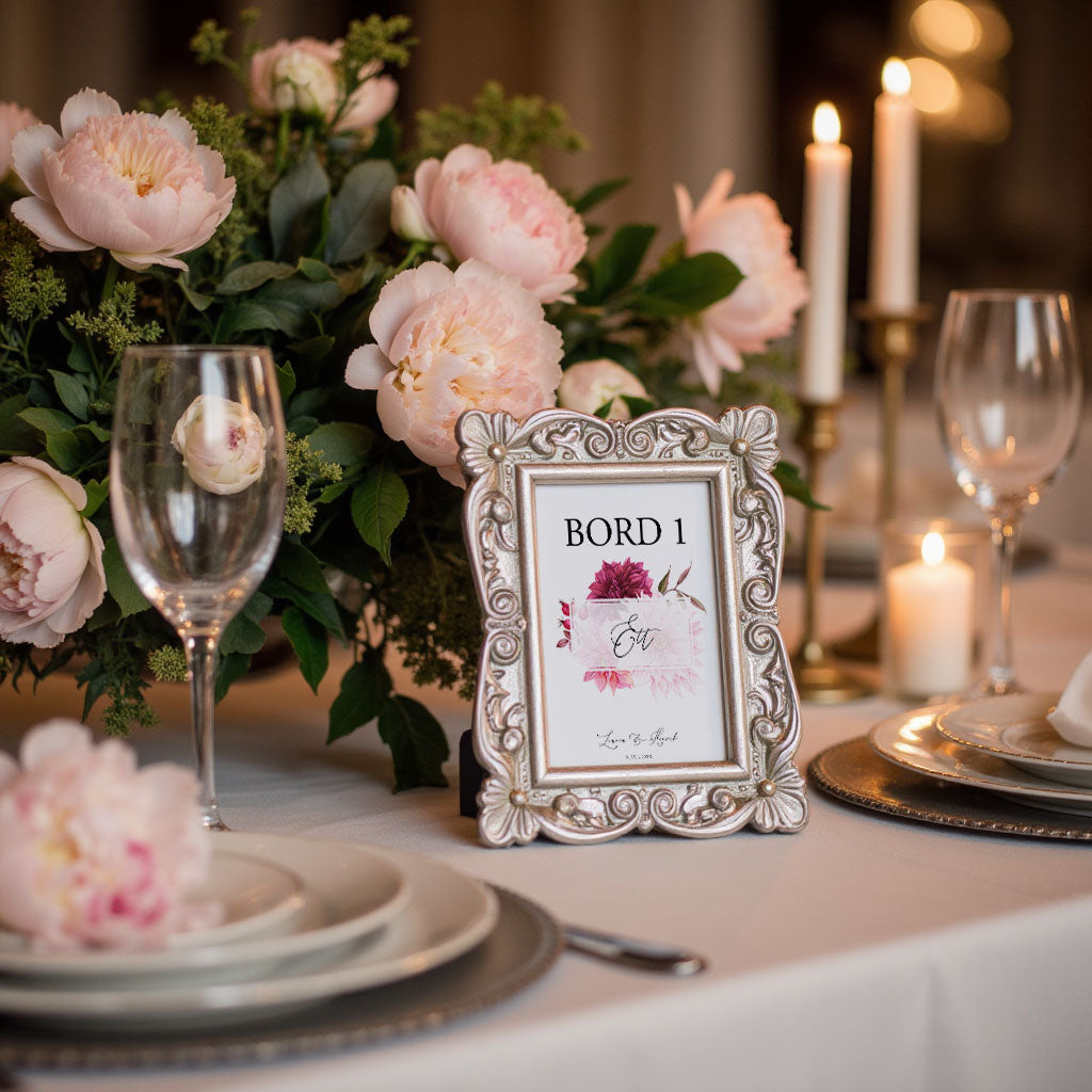 Bordsnummerkort till bröllop – Burgundy Dahlia – Tryckt kort för dukning och bordsplacering BR002