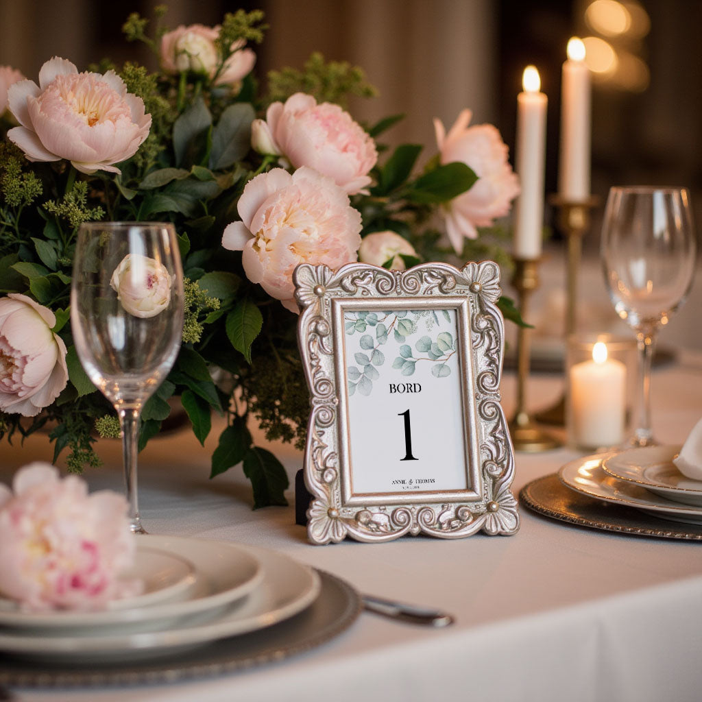 Bordsnummerkort till bröllop – Eucalyptus Elegant – Tryckt kort för dukning och bordsplacering BR005