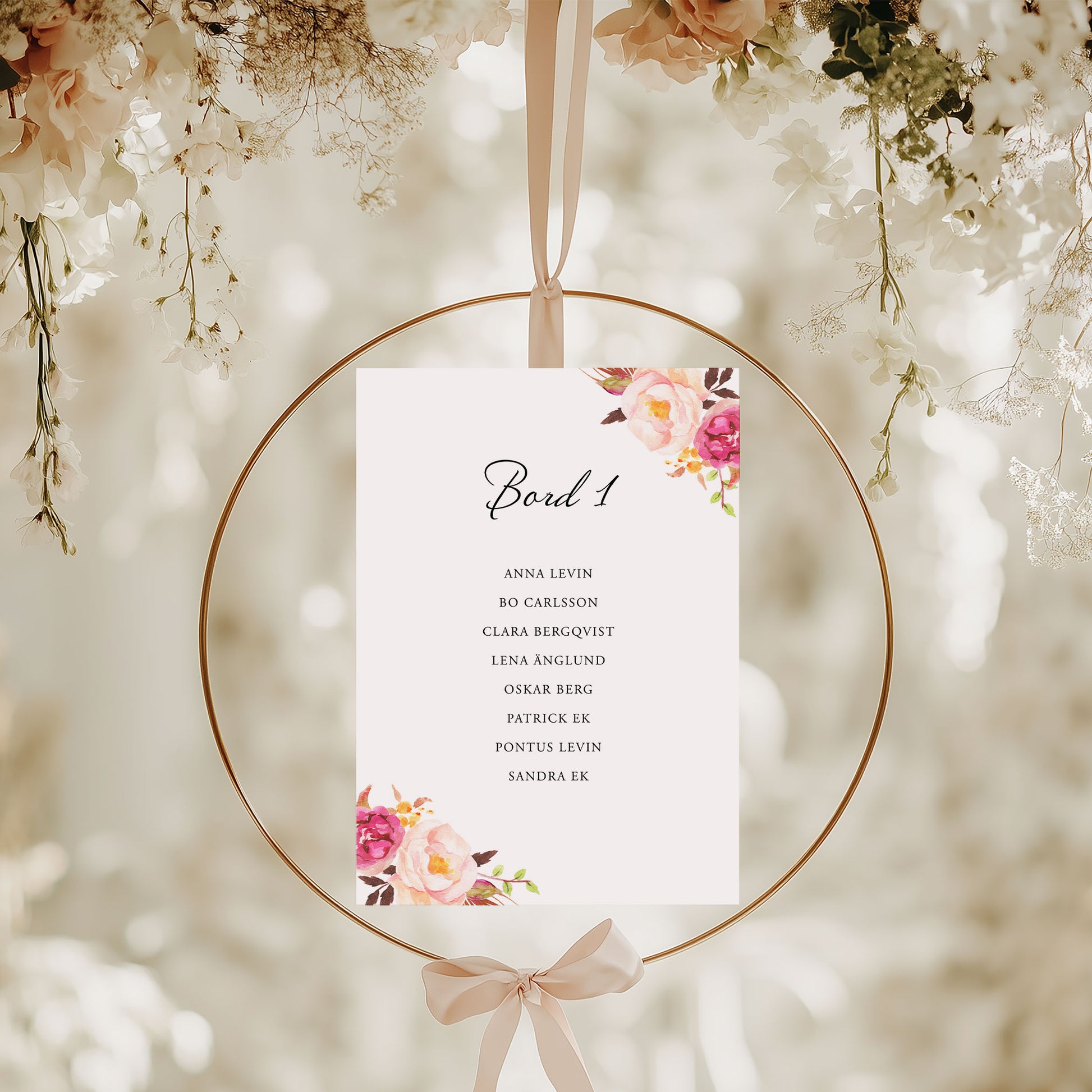 Bordsplaceringskort till bröllop – Peach & Blush Blommig Romantisk Somrig – Titelskylt & bordskort för gäster BR006