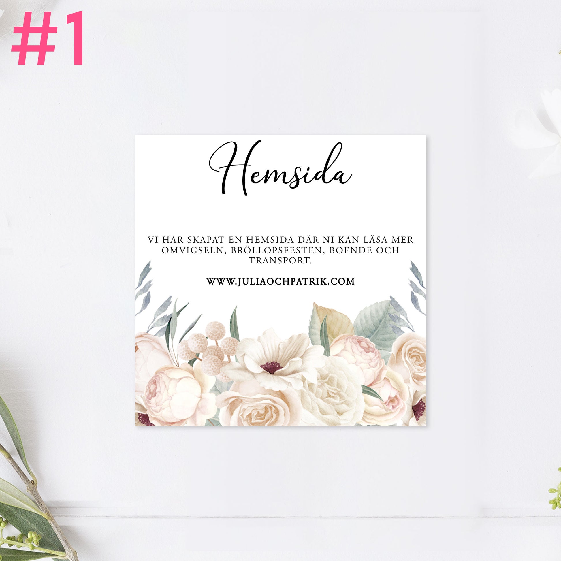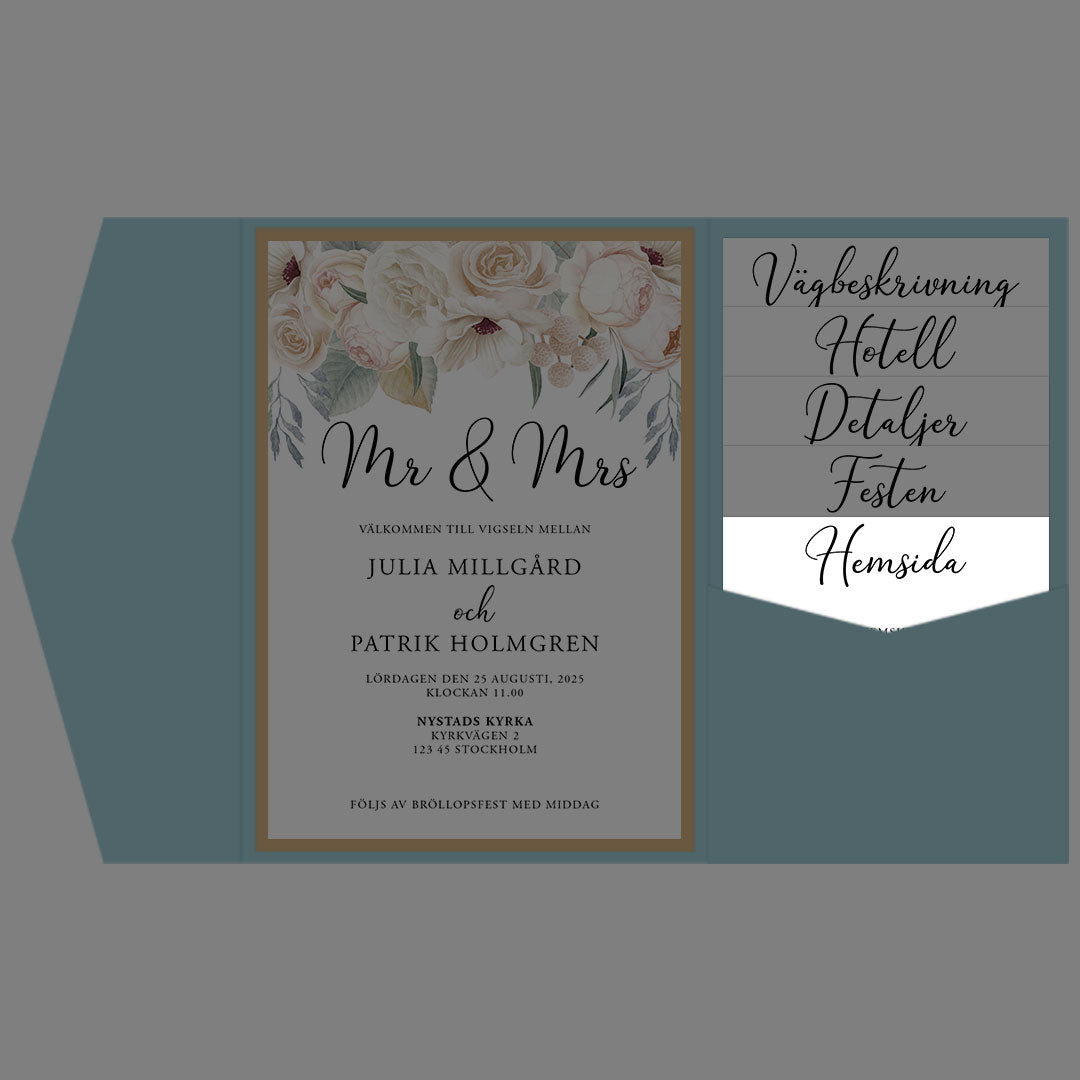 BR001-1 - Bröllopshemsida - Vitblommig Mr & Mrs - Tryckt bröllopskort