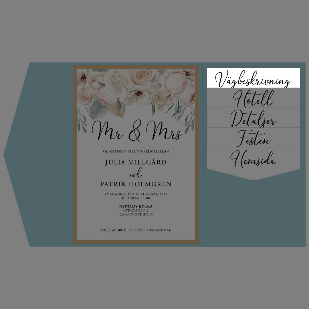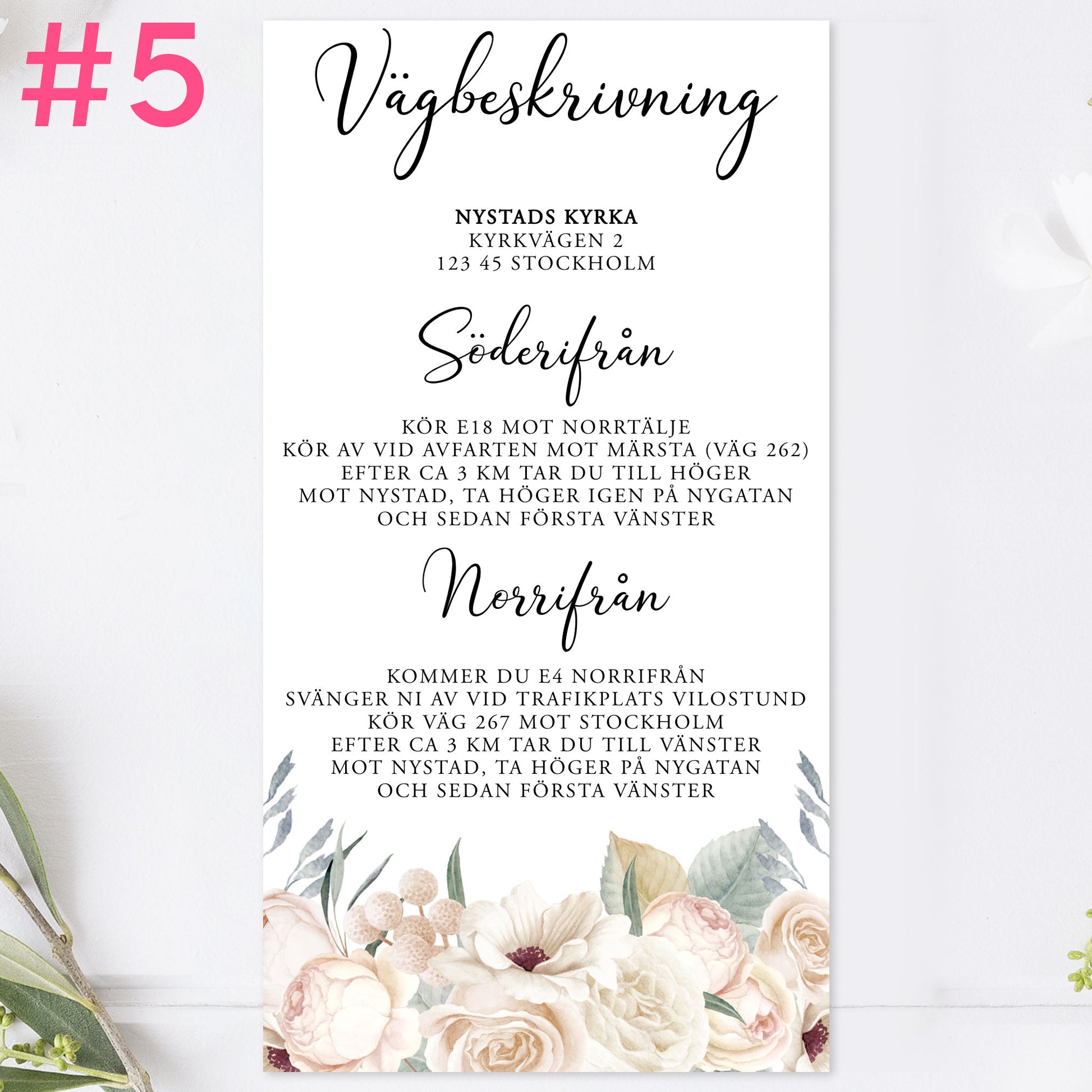 BR001-5 - Vägbeskrivning - Vitblommig Mr & Mrs - Tryckt bröllopskort