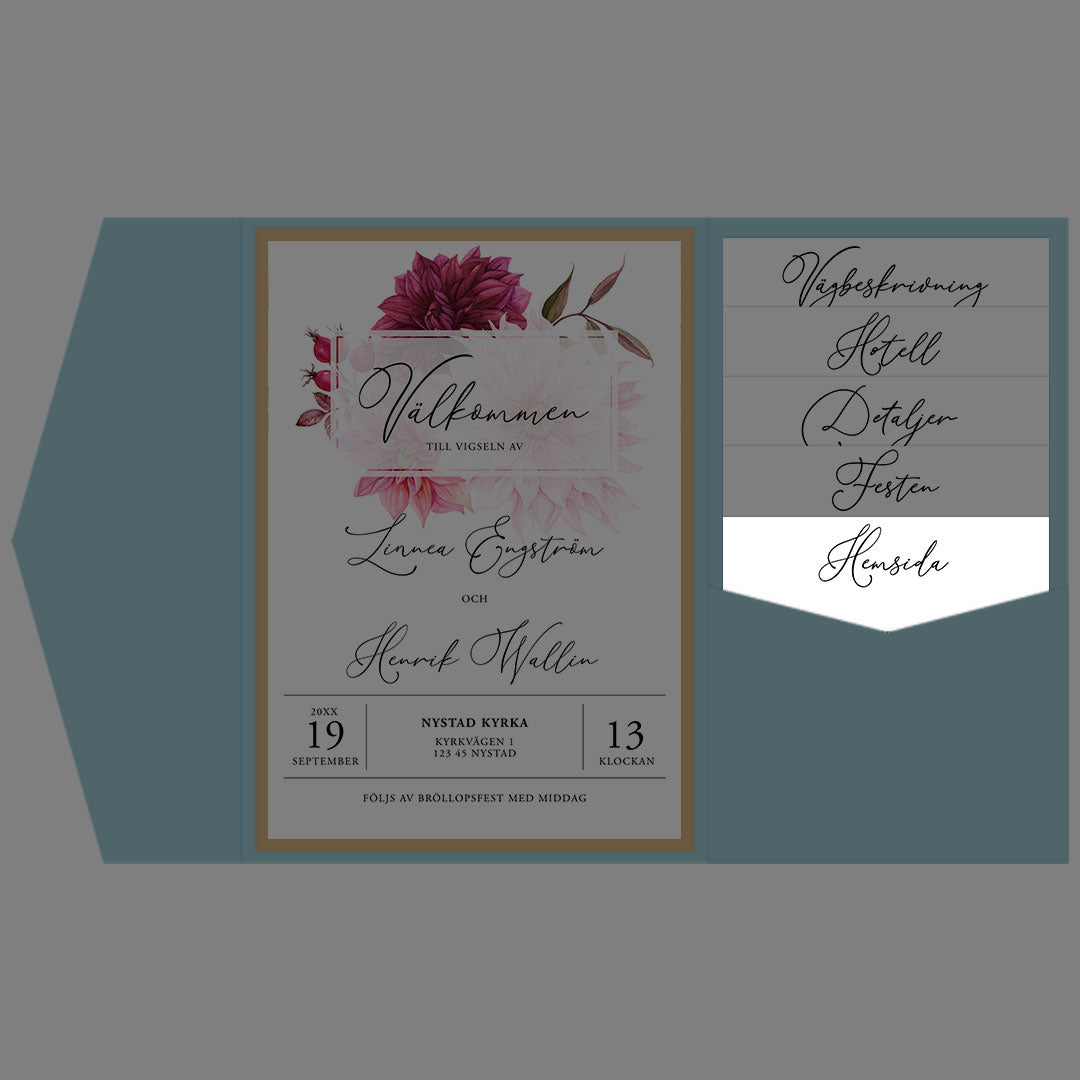 BR002-1 - Bröllopshemsida - Burgundy Dahlia - Tryckt bröllopskort