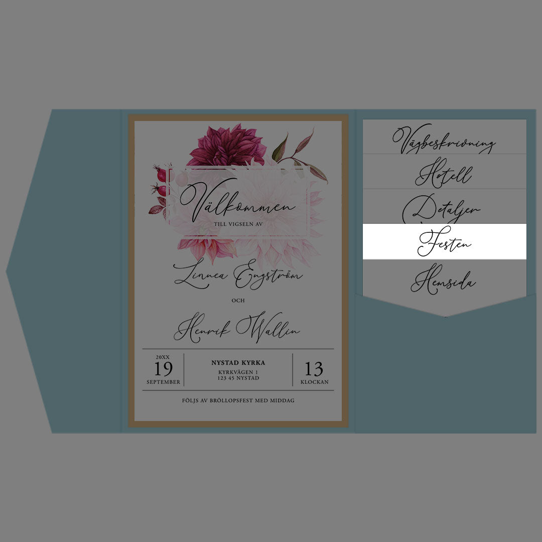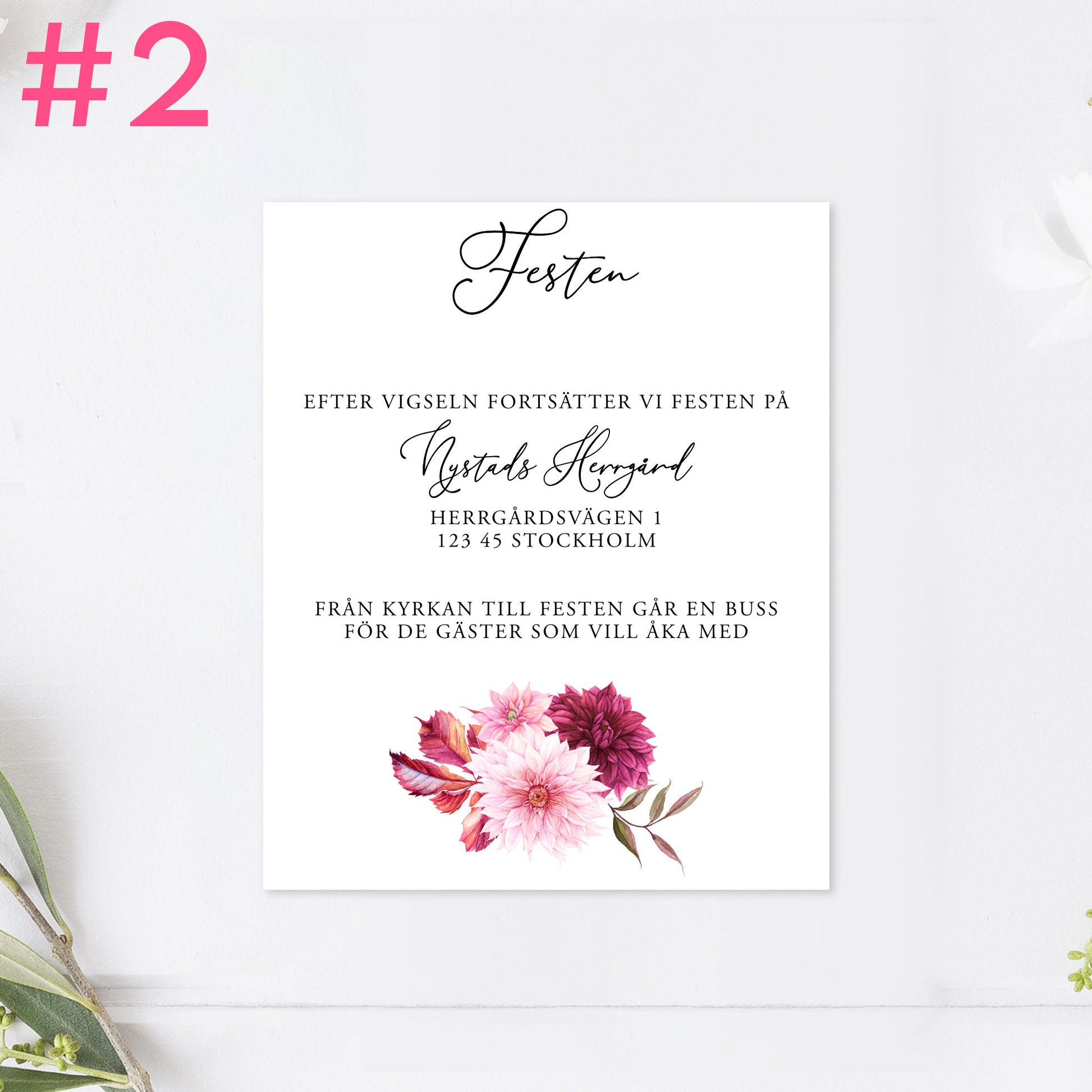 BR002-2 - Festinformation - Burgundy Dahlia - Tryckt bröllopskort