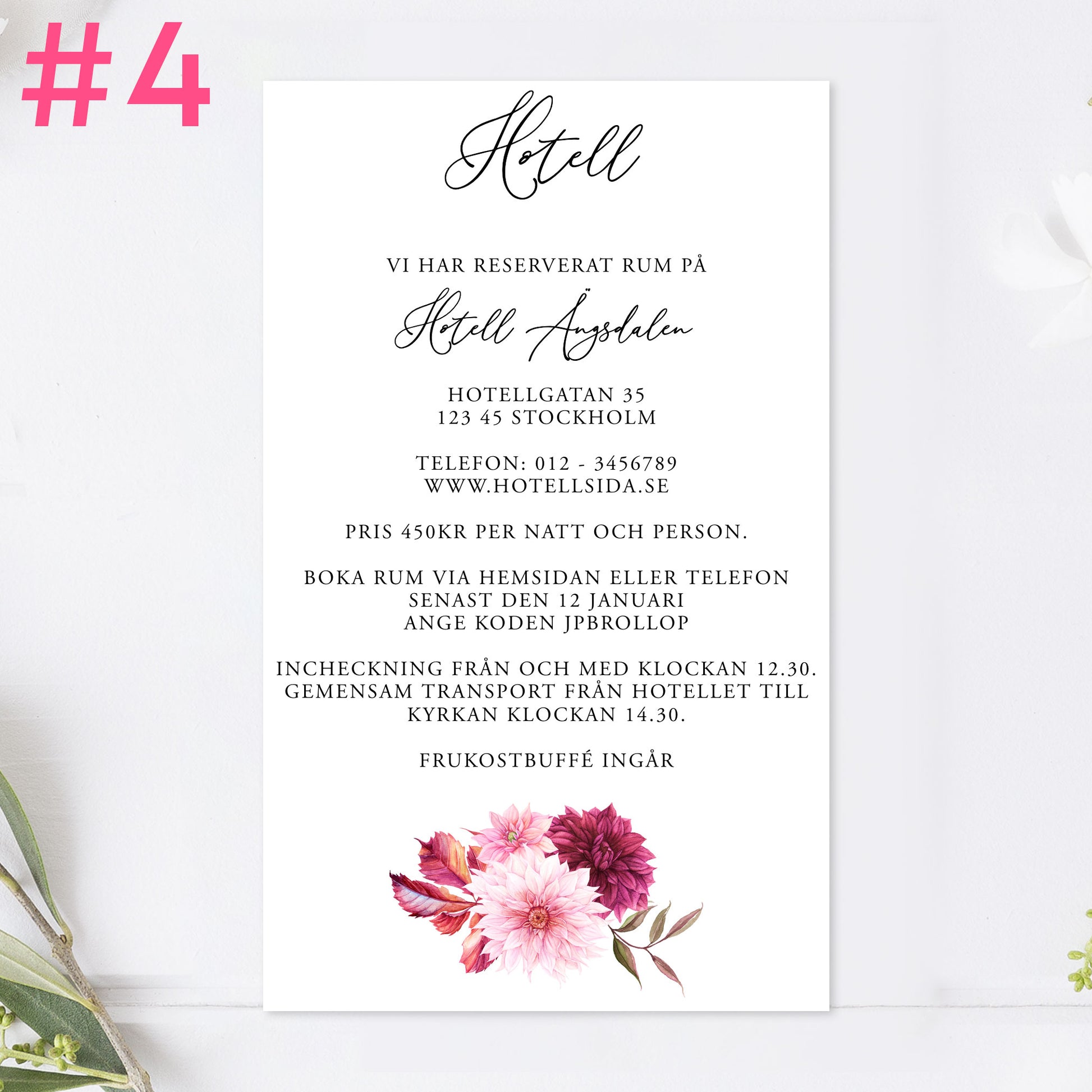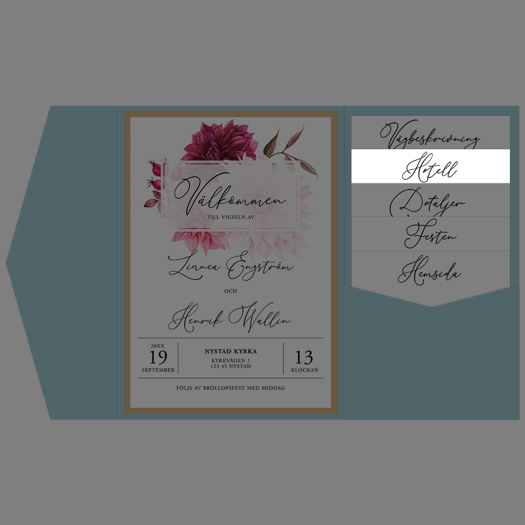 BR002-4 - Boendeinformation - Burgundy Dahlia - Tryckt bröllopskort