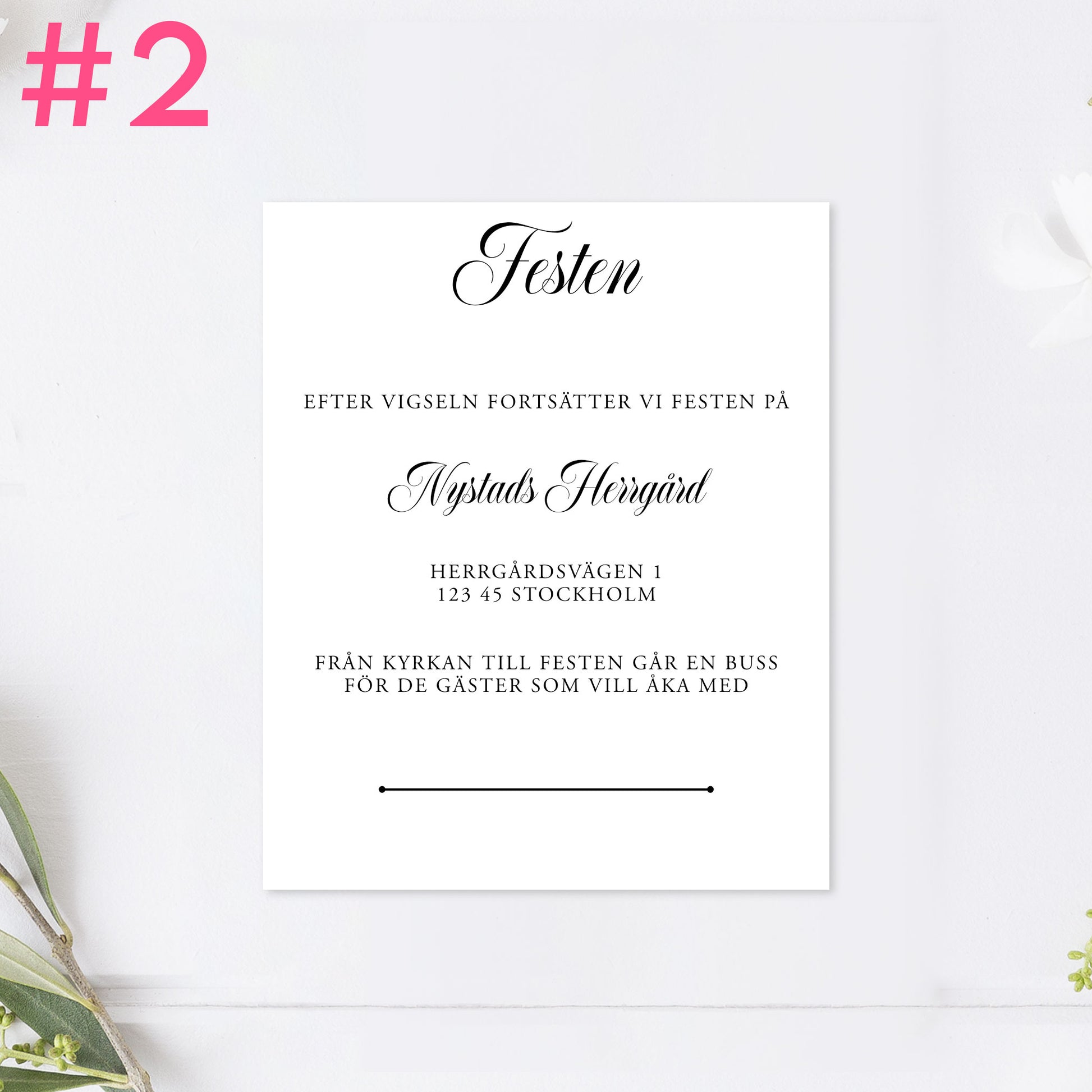 BR003-2 - Festinformation - Formellt svartvitt - Tryckt bröllopskort