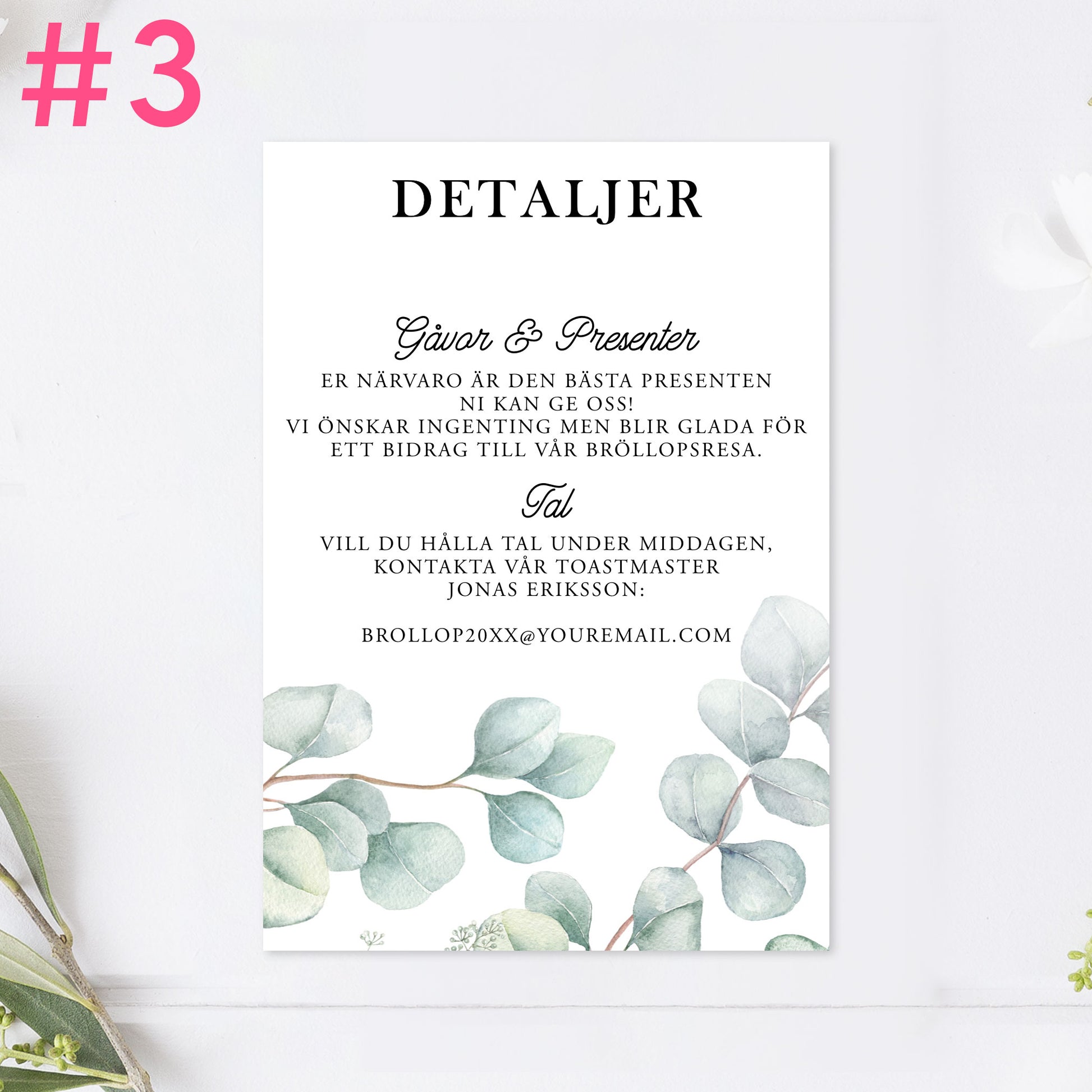 BR005-3 - Informationskort - Eucalyptus Elegant - Tryckt bröllopskort