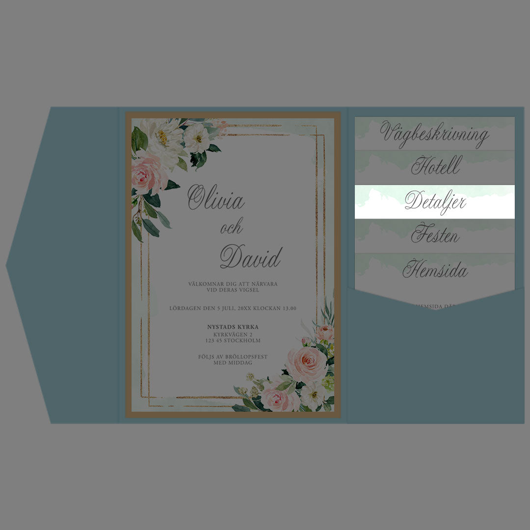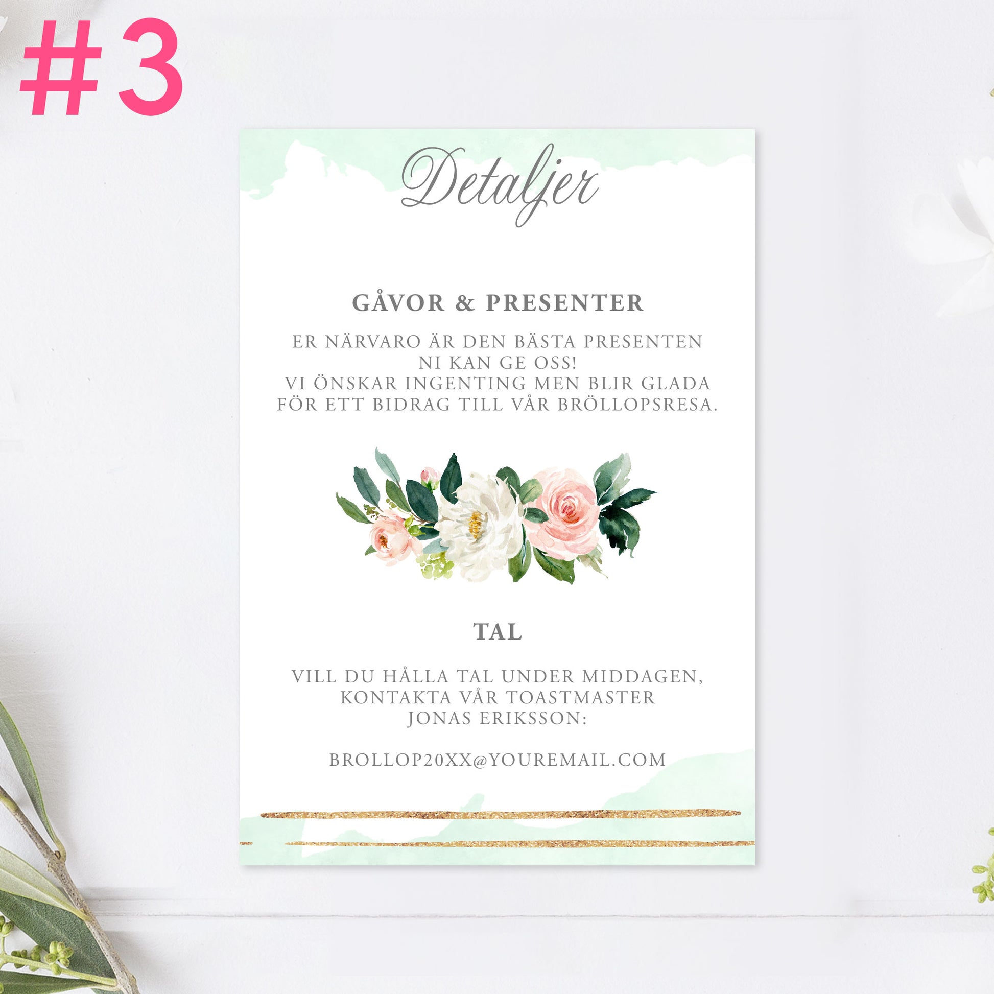 BR009-3 - Informationskort - Mint & Guld Somrigt - Tryckt bröllopskort