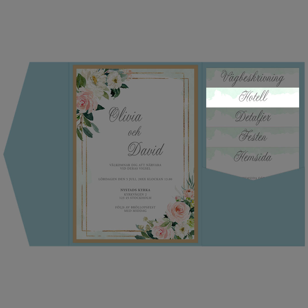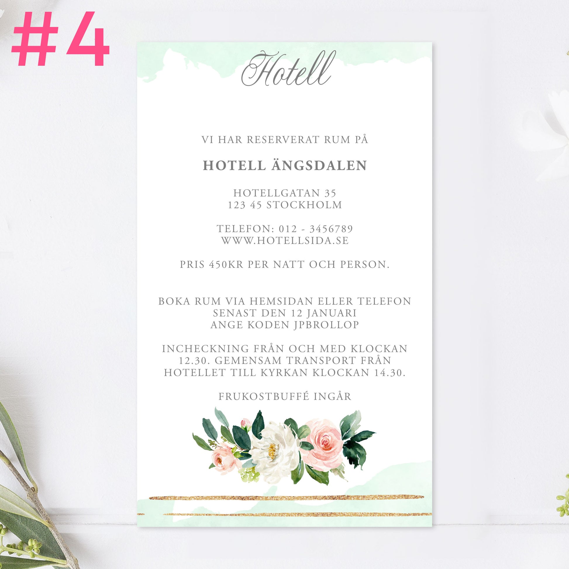 BR009-4 - Boendeinformation - Mint & Guld Somrigt - Tryckt bröllopskort