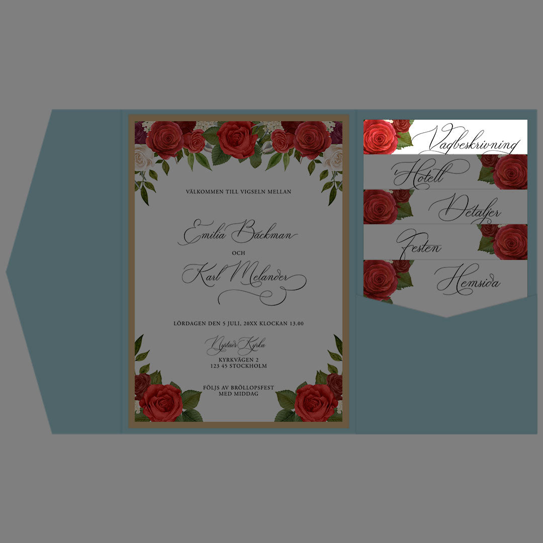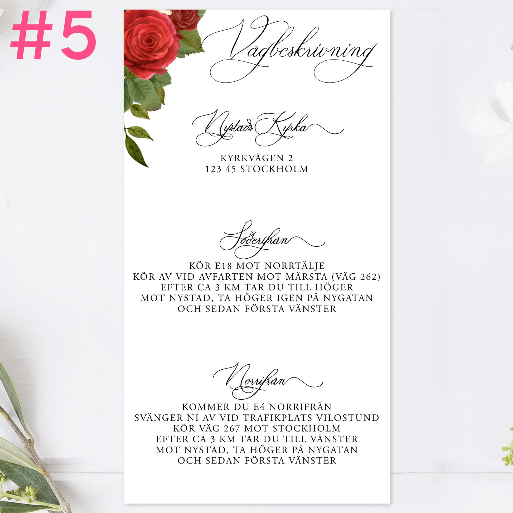 BR010-5 - Vägbeskrivning - Romantiskt Röda Rosor - Tryckt bröllopskort