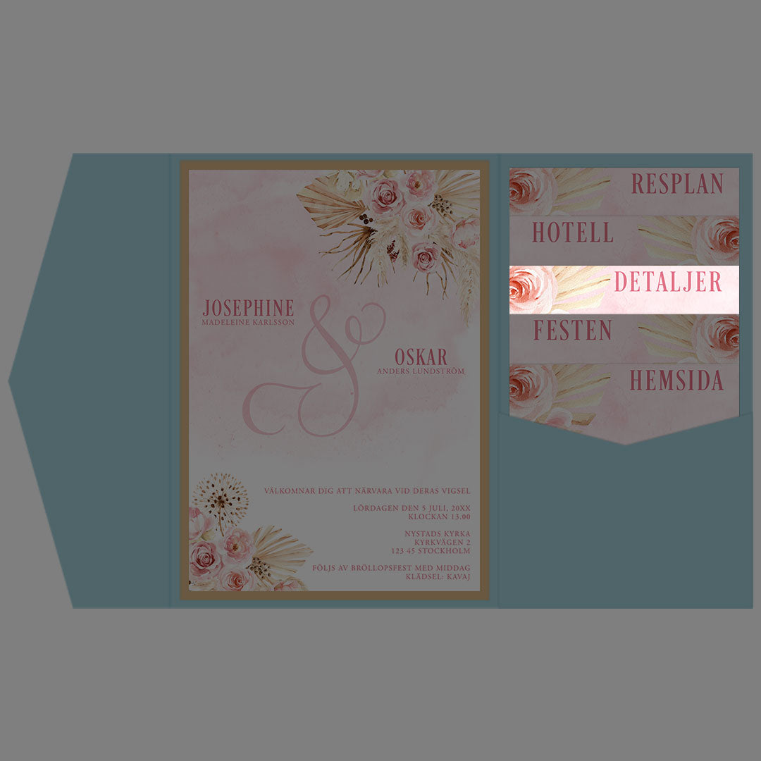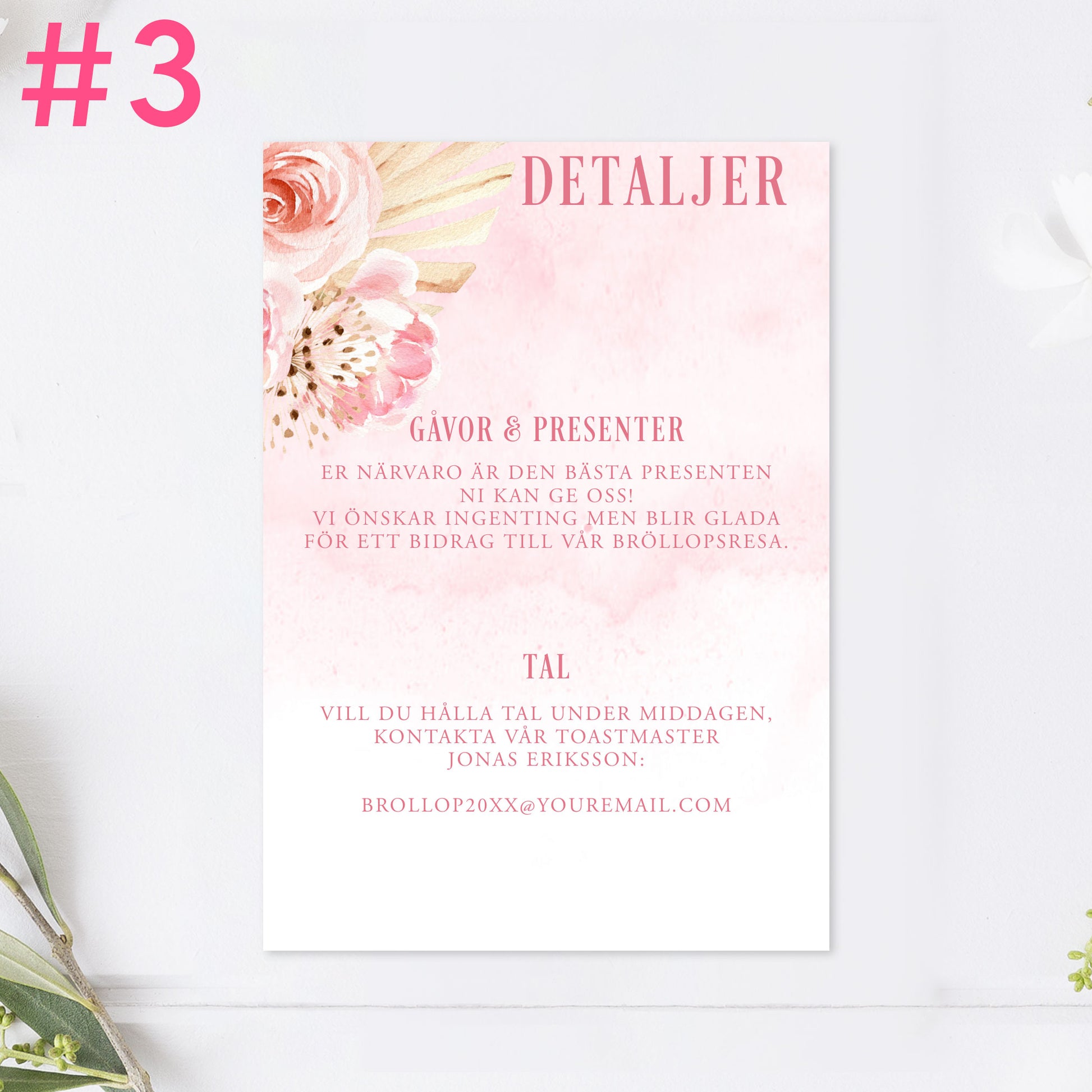BR011-3 - Informationskort - Boho Rosa pampas - Tryckt bröllopskort