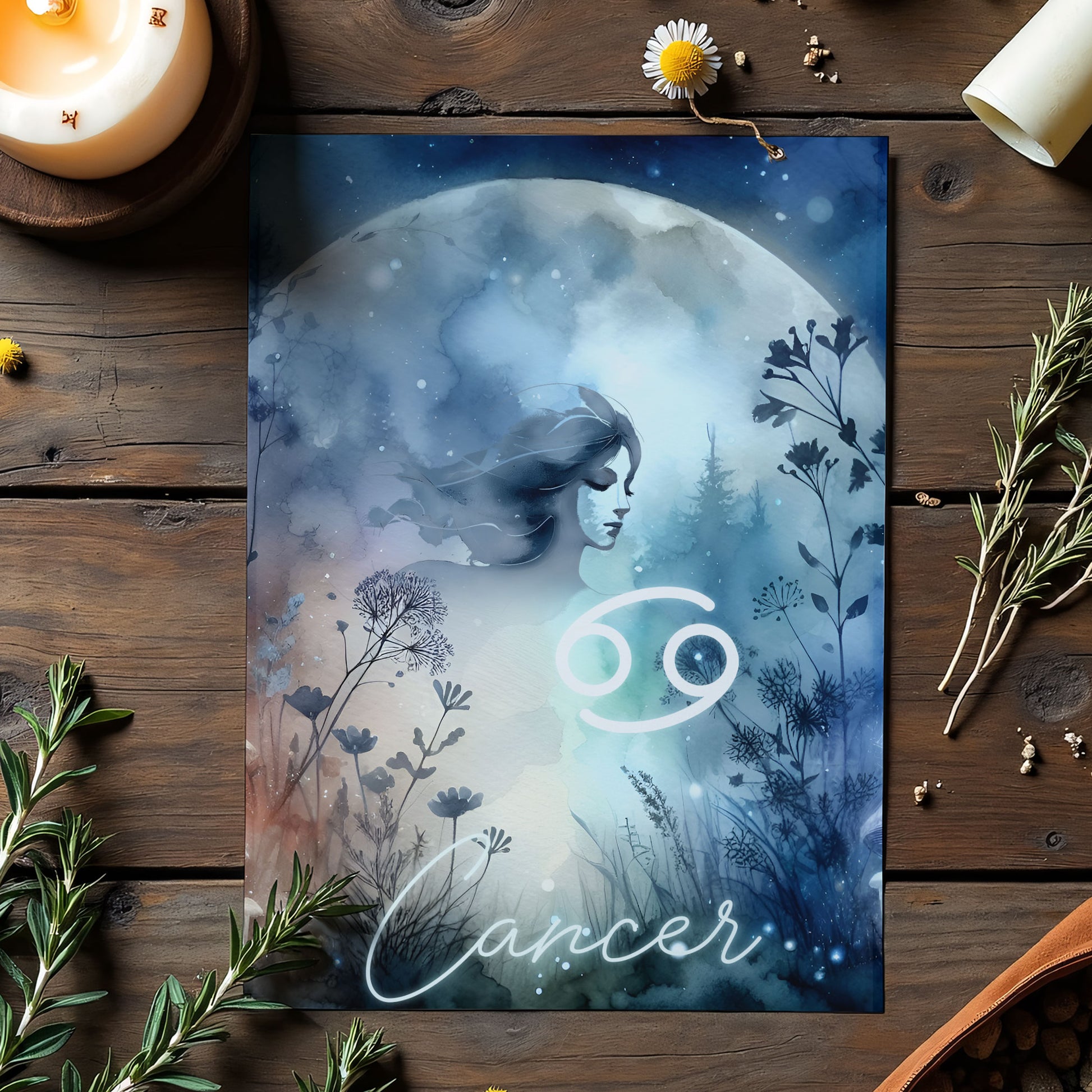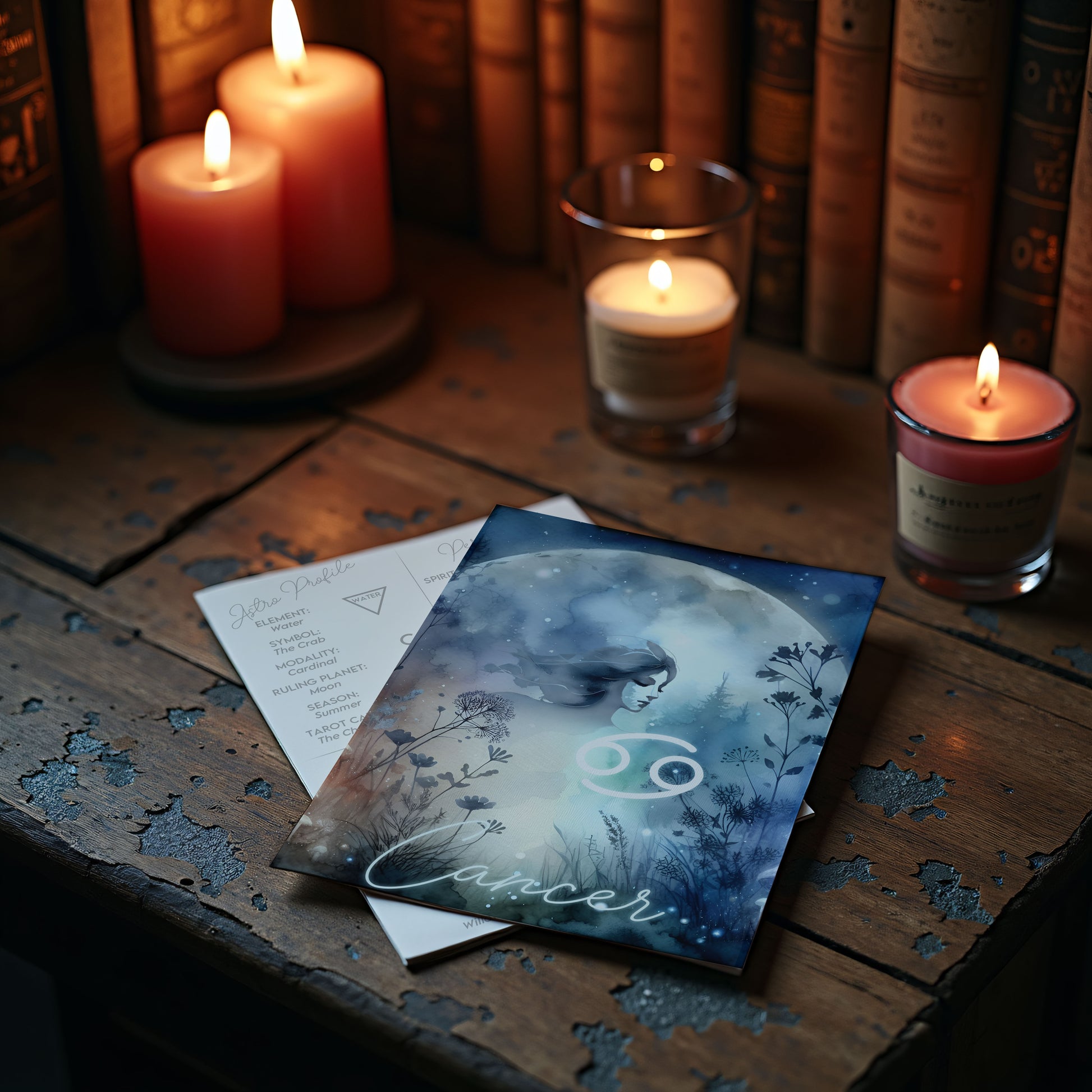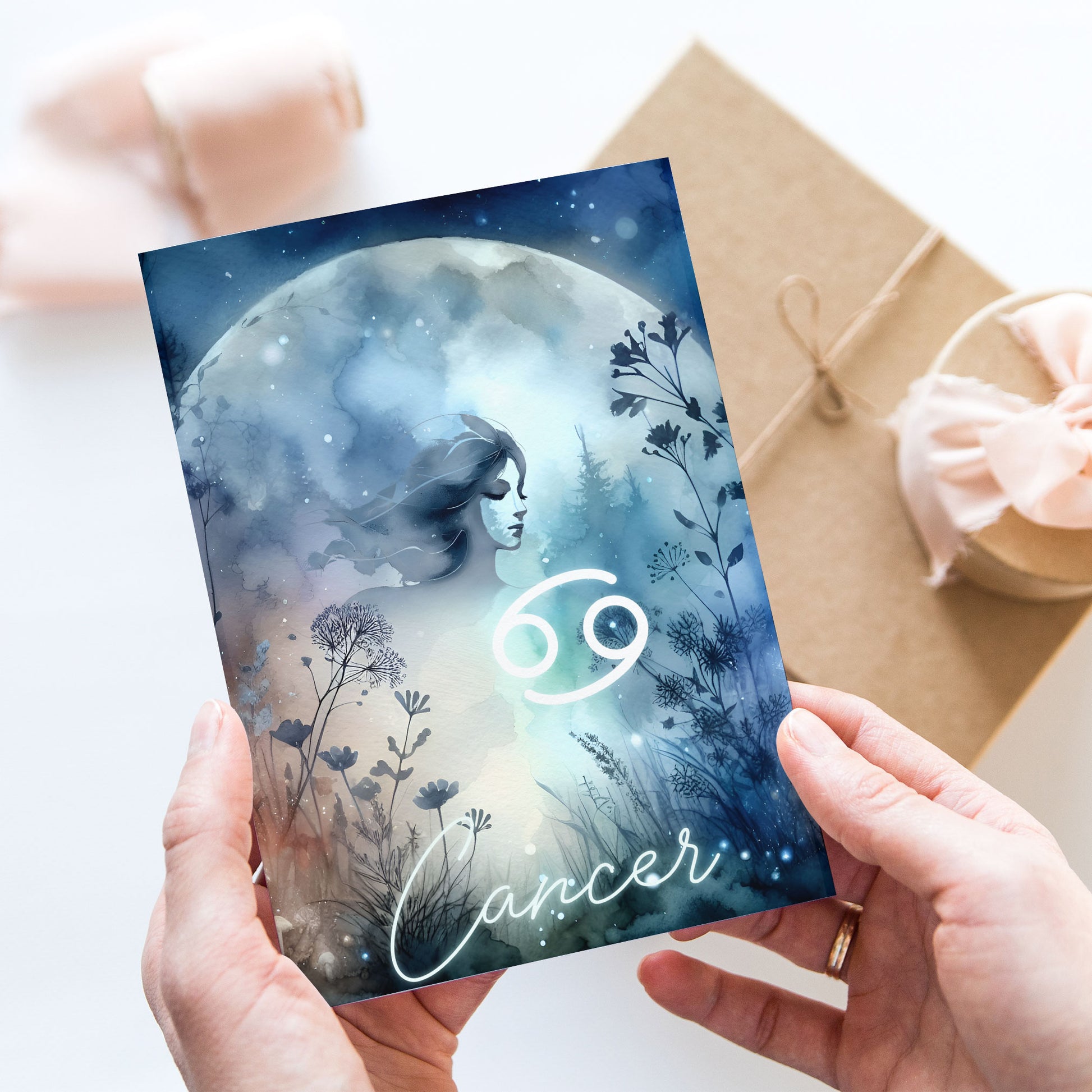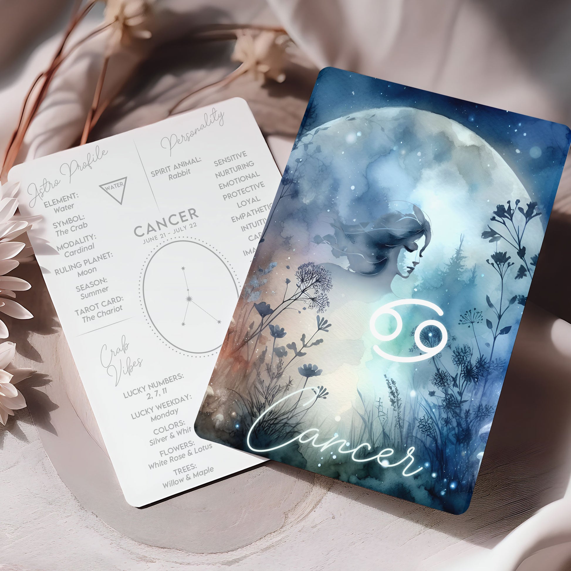 Kräftan – Stjärnteckenkort med stjärnbild & kristaller – Astrologiskt A6-kort för journaling eller gåva – ZC424