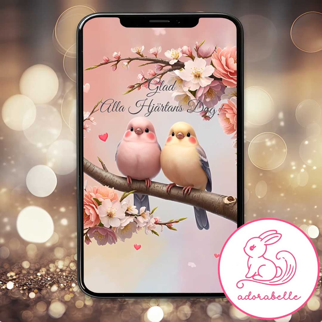 Digitalt Alla Hjärtans Dag kort 2026 – Animerad Videohälsning utan ljud (Fåglar) - Direktnedladdning