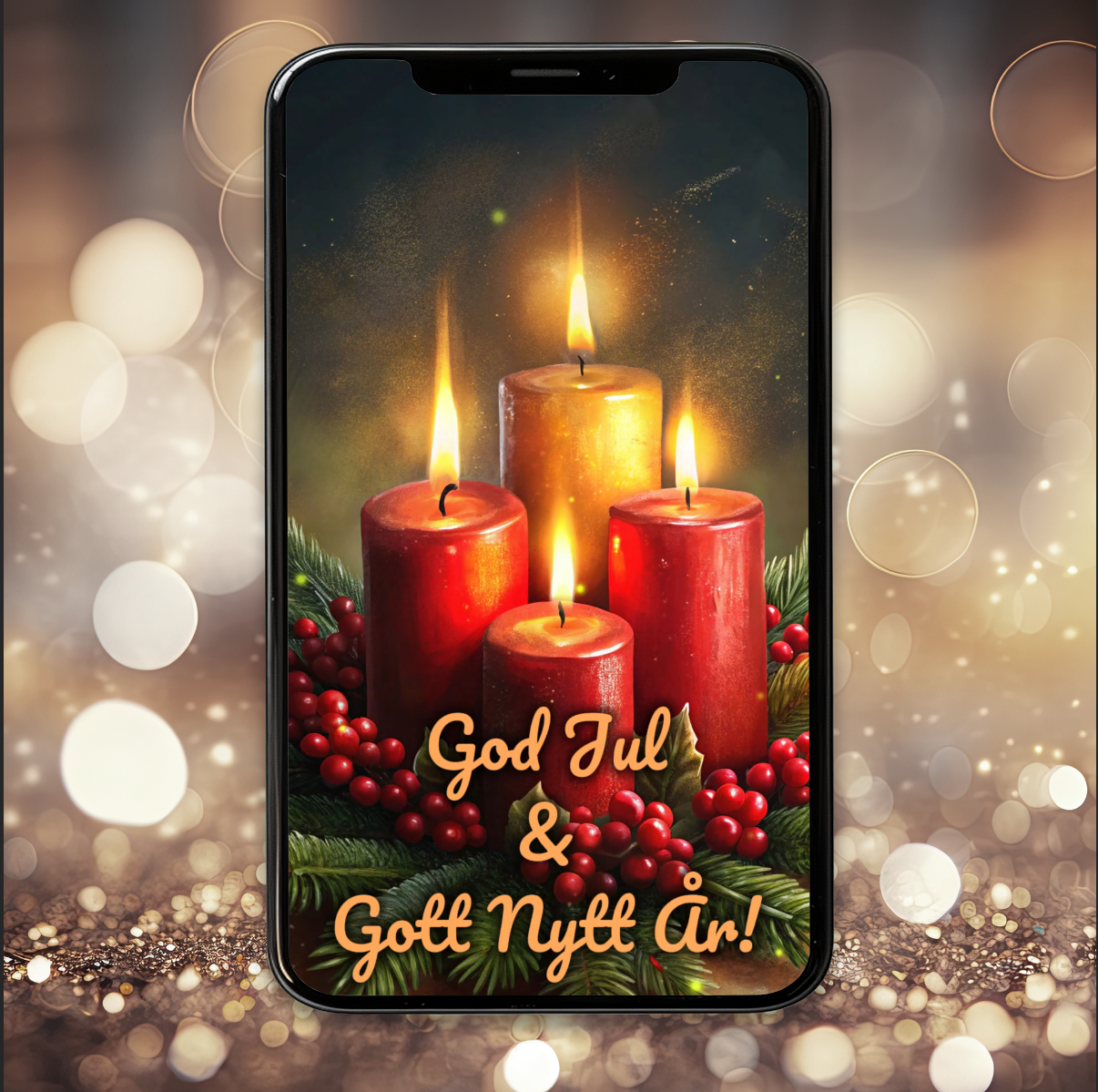 Detta julkort är designat och animerat i vår studio i Småland. Designen kan innehålla element skapade med AI-verktyg, kombinerat med originalillustrationer och redigering.