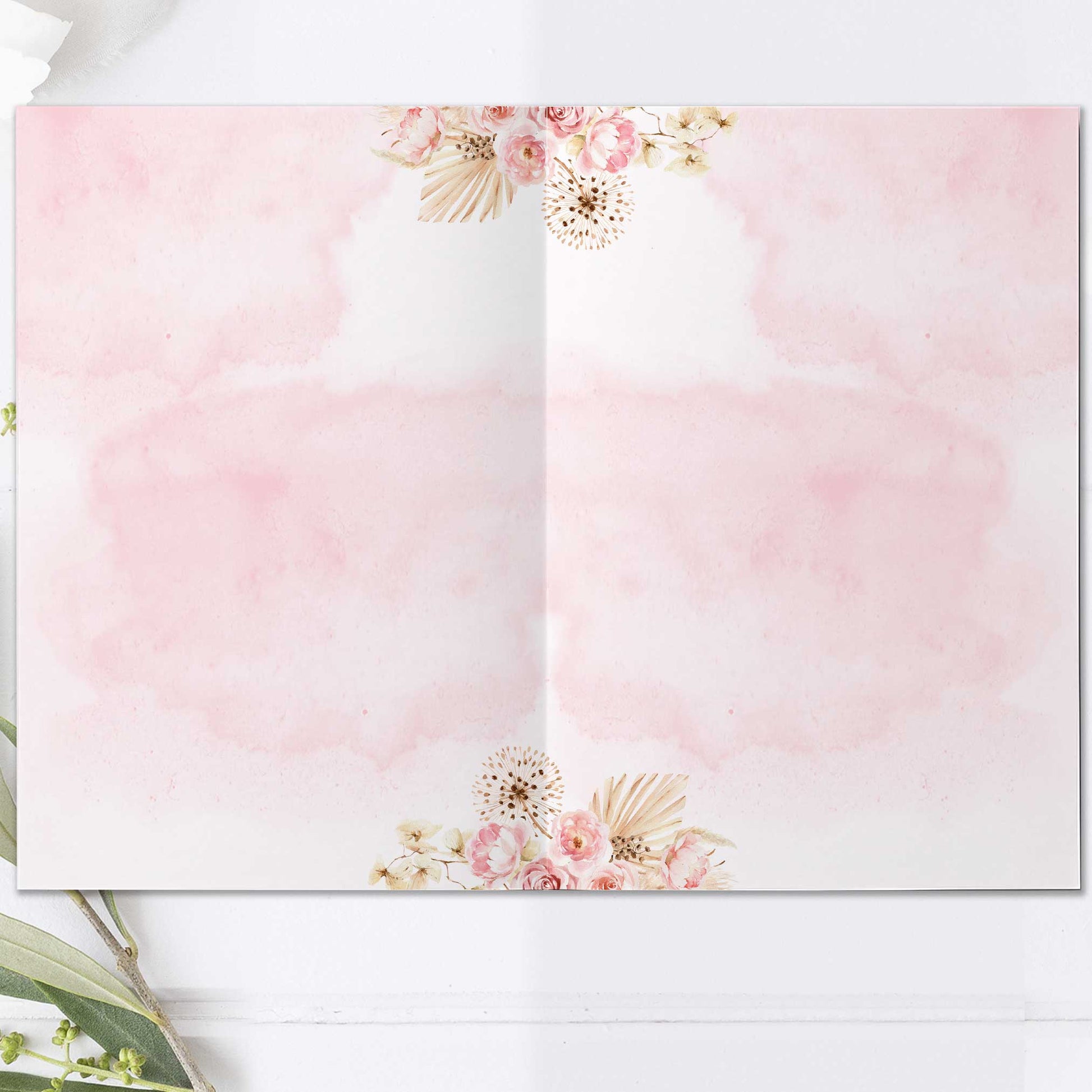Festprogram litet, till bröllop – Boho Rosa pampas – Tryckt programkort 14,5x20 cm BR011