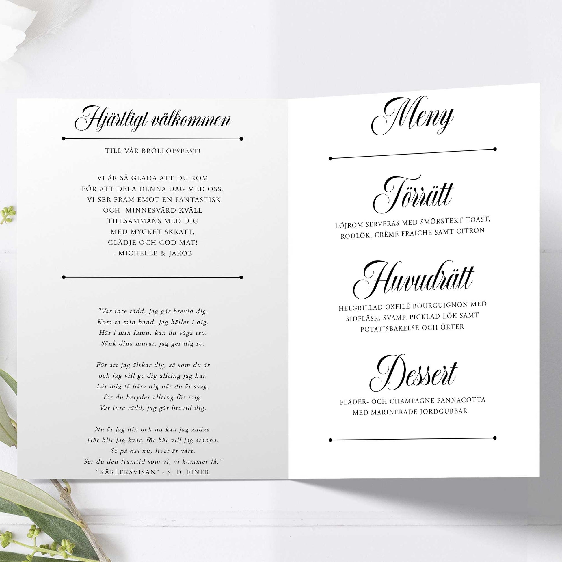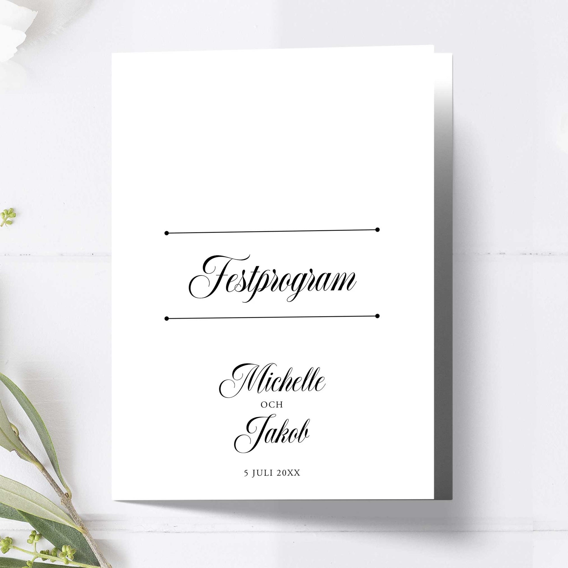Festprogram litet, till bröllop – Klassisk svartvit Formellt – Tryckt programkort 12,7x17,7 cm BR003