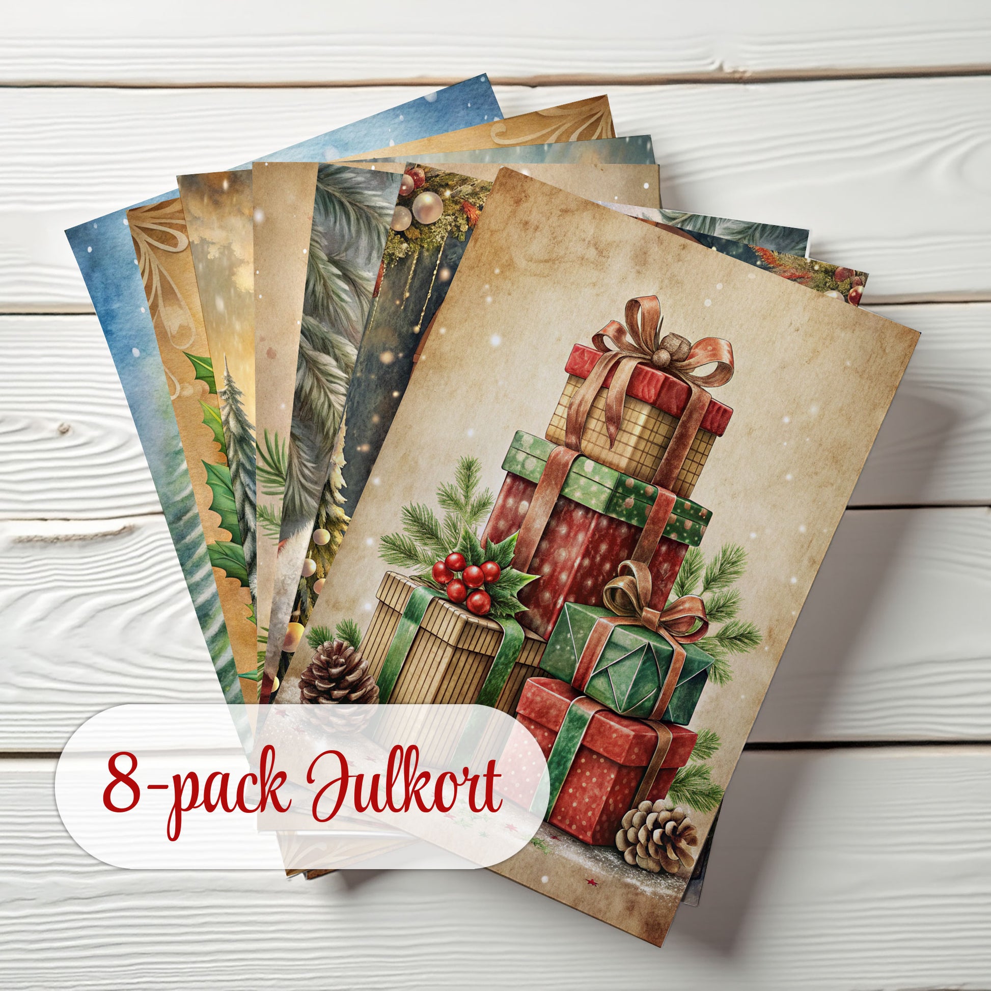 Julkort 2025 – 8-pack vykort med nostalgiska julmotiv – Skicka en julhälsning