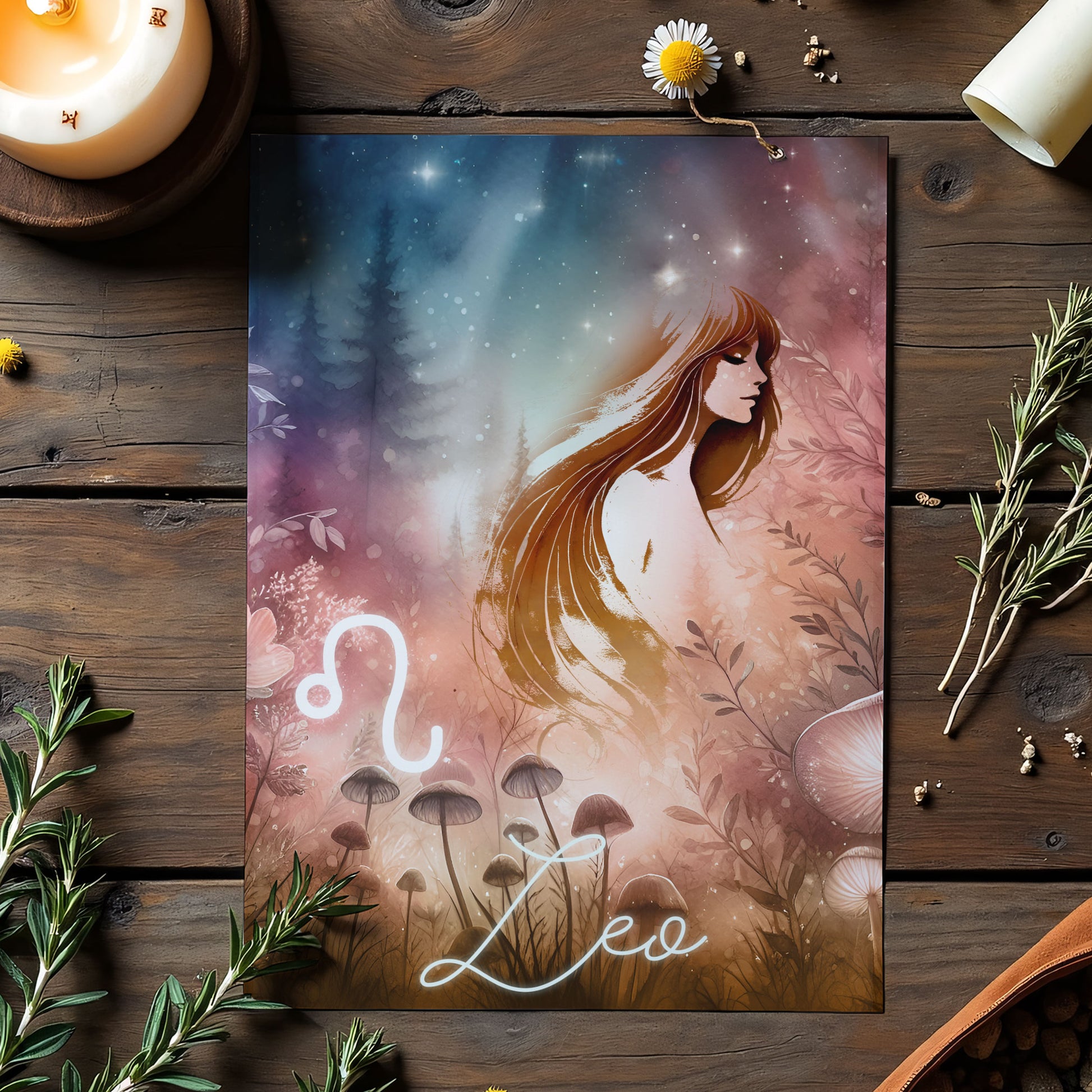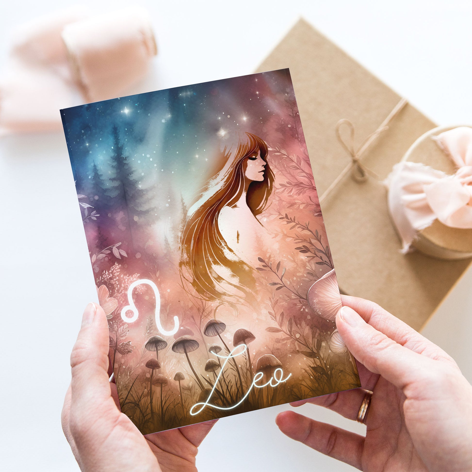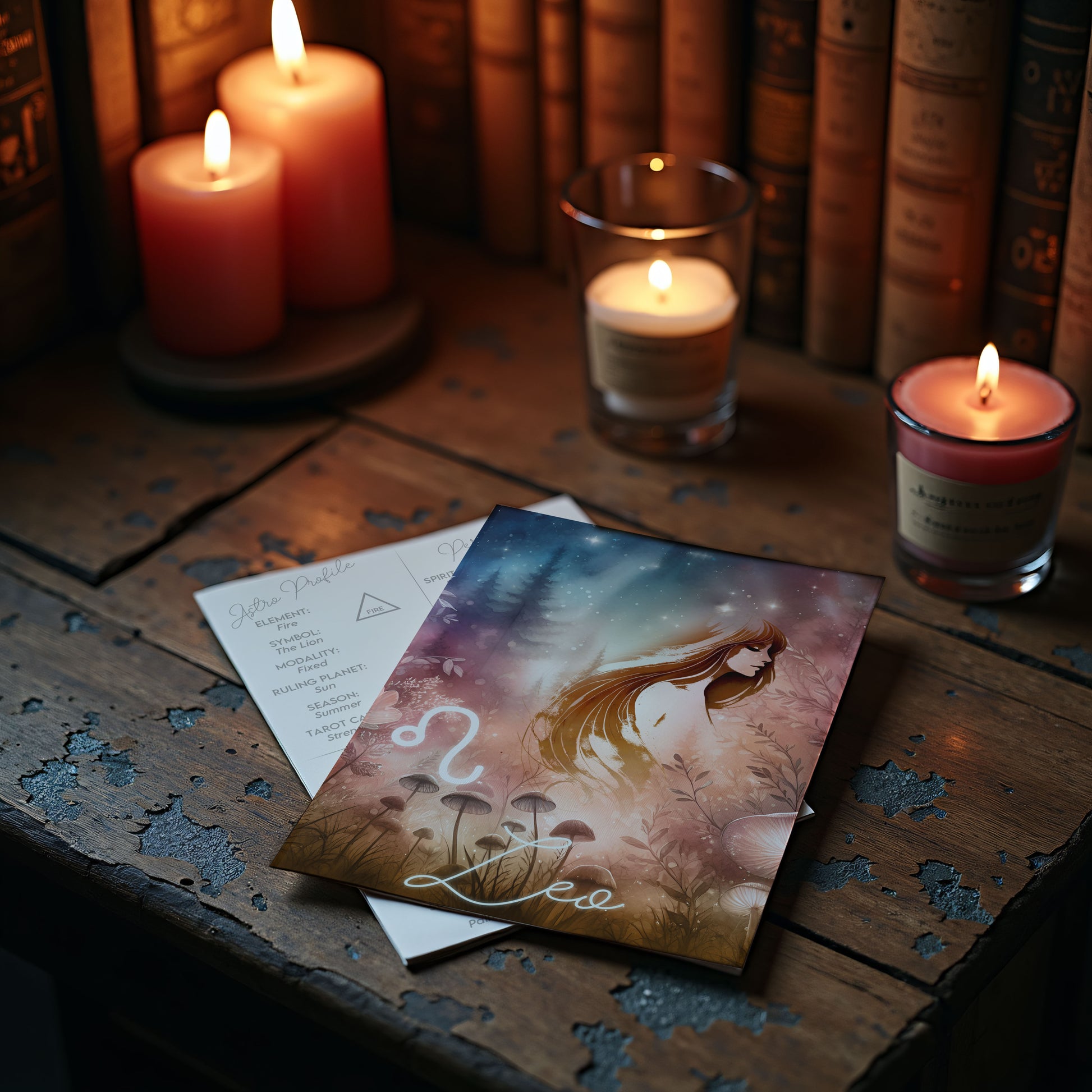 Lejonet – Stjärnteckenkort med stjärnbild & kristaller – Astrologiskt A6-kort för journaling eller gåva – ZC426