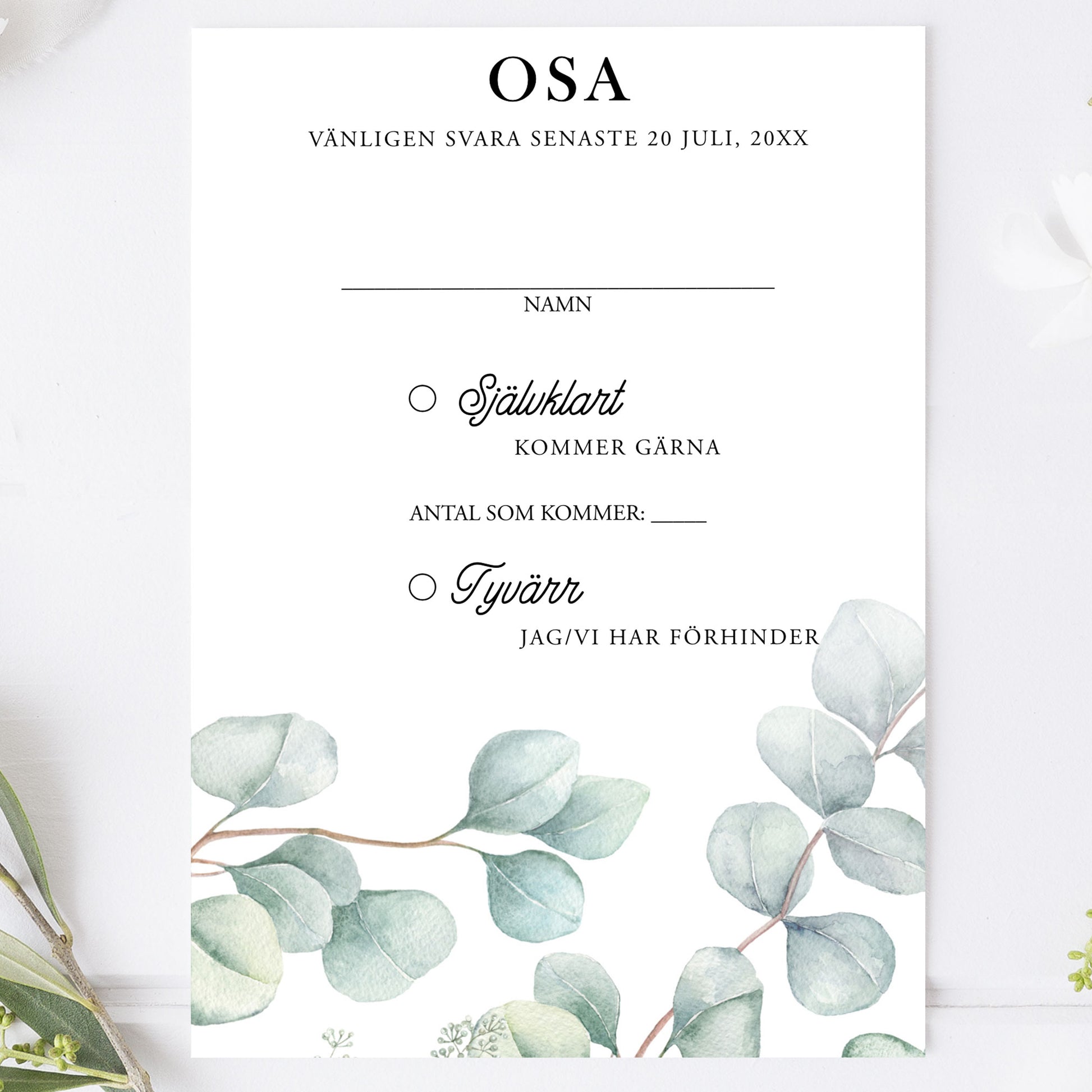 OSA-kort med kuvert (8 färger) – A6 Eucalyptus Elegant – Bröllopskort BR005