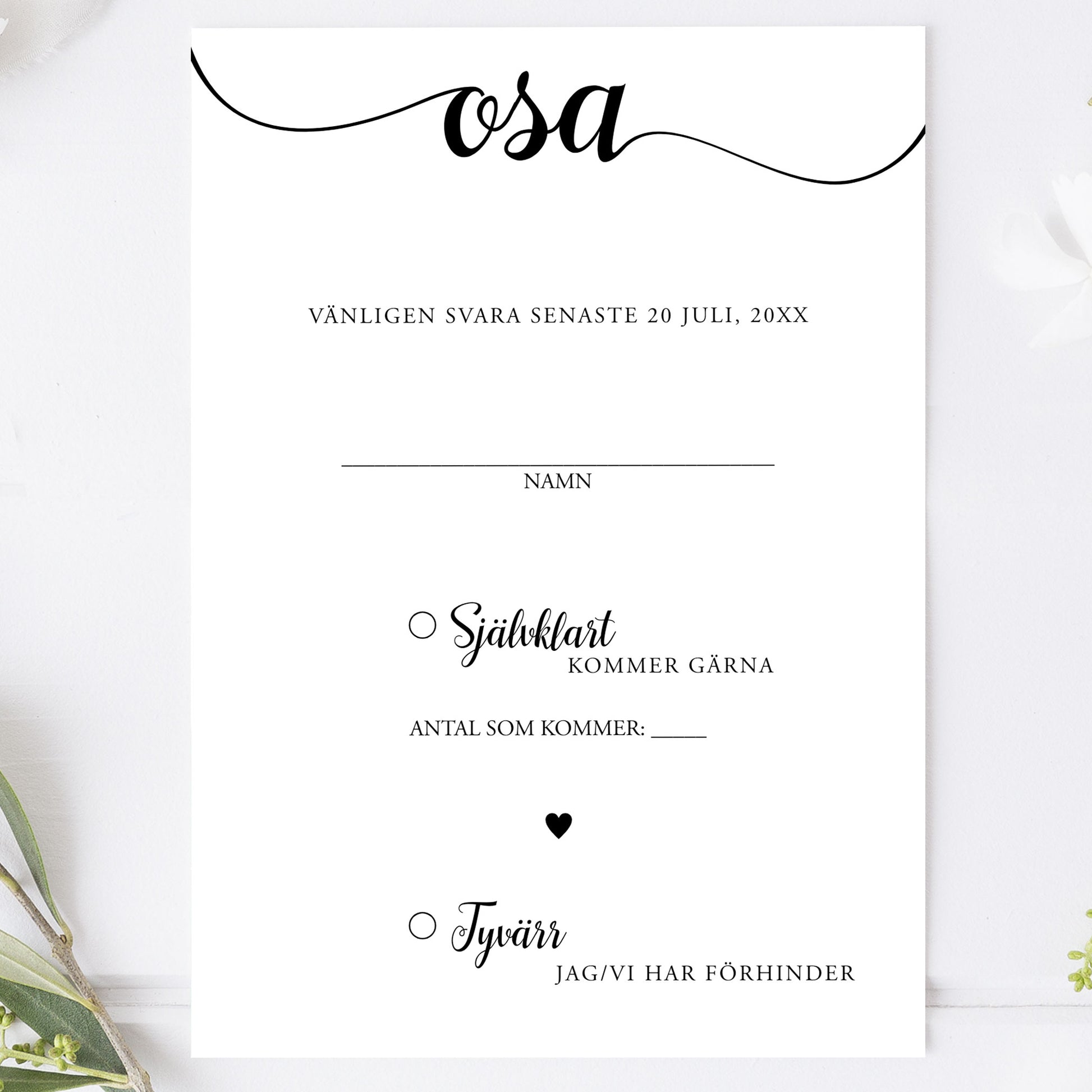 OSA-kort med kuvert (8 färger) – A6 We Do svartvitt – Bröllopskort BR007