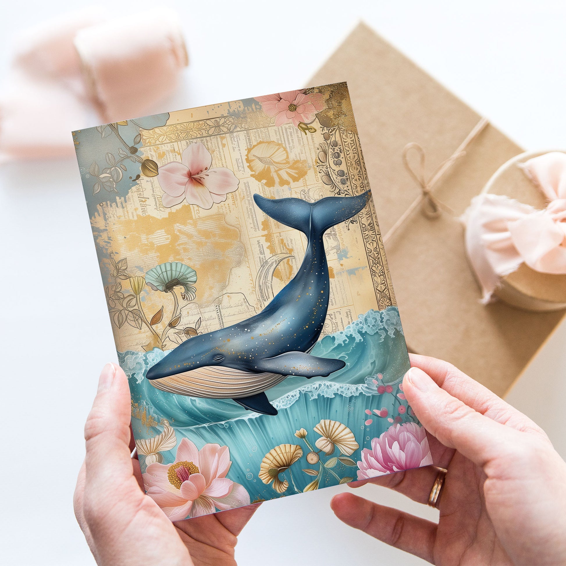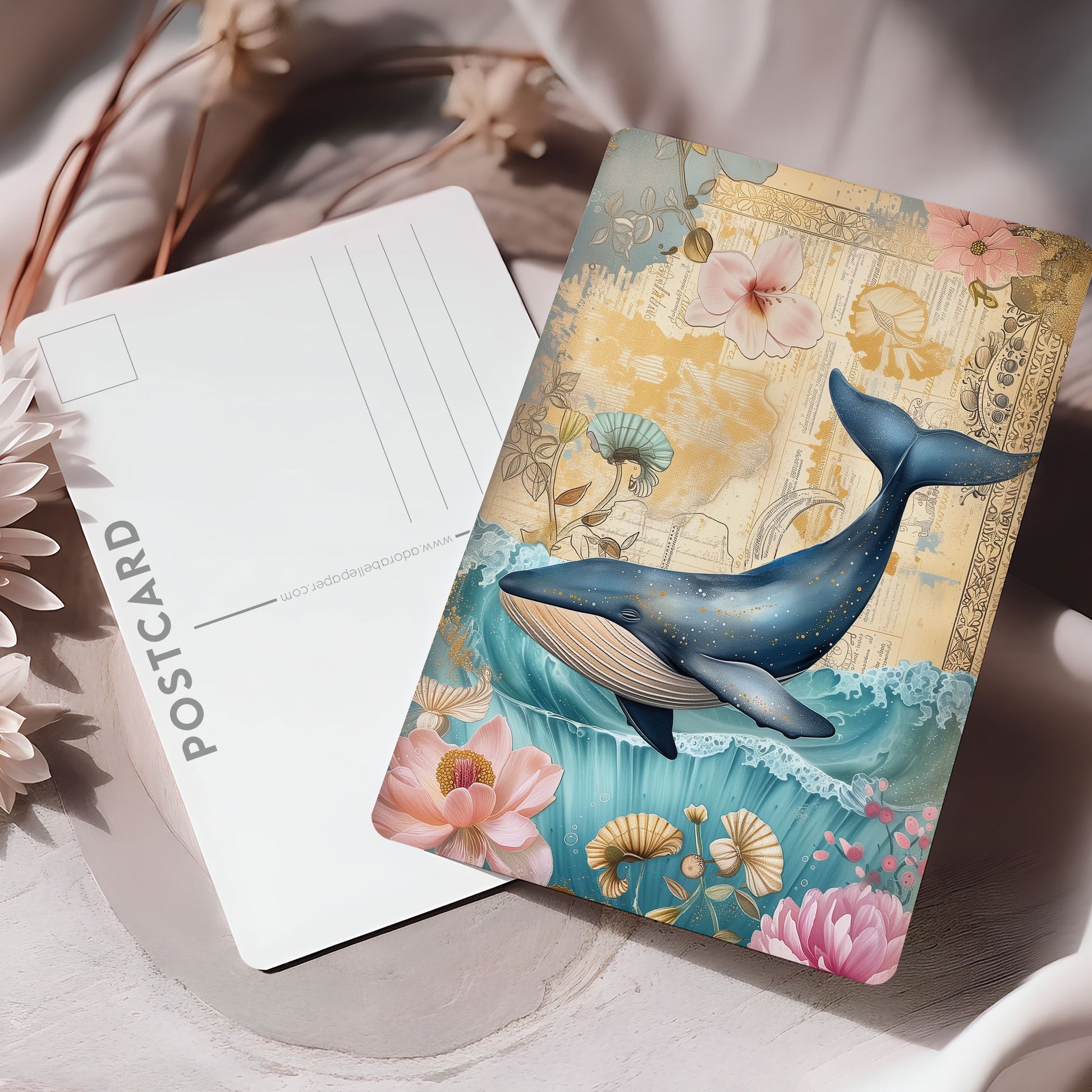 Vykort för postcrossing, scrapbooking & dekoration - Vintage Blåval PC514