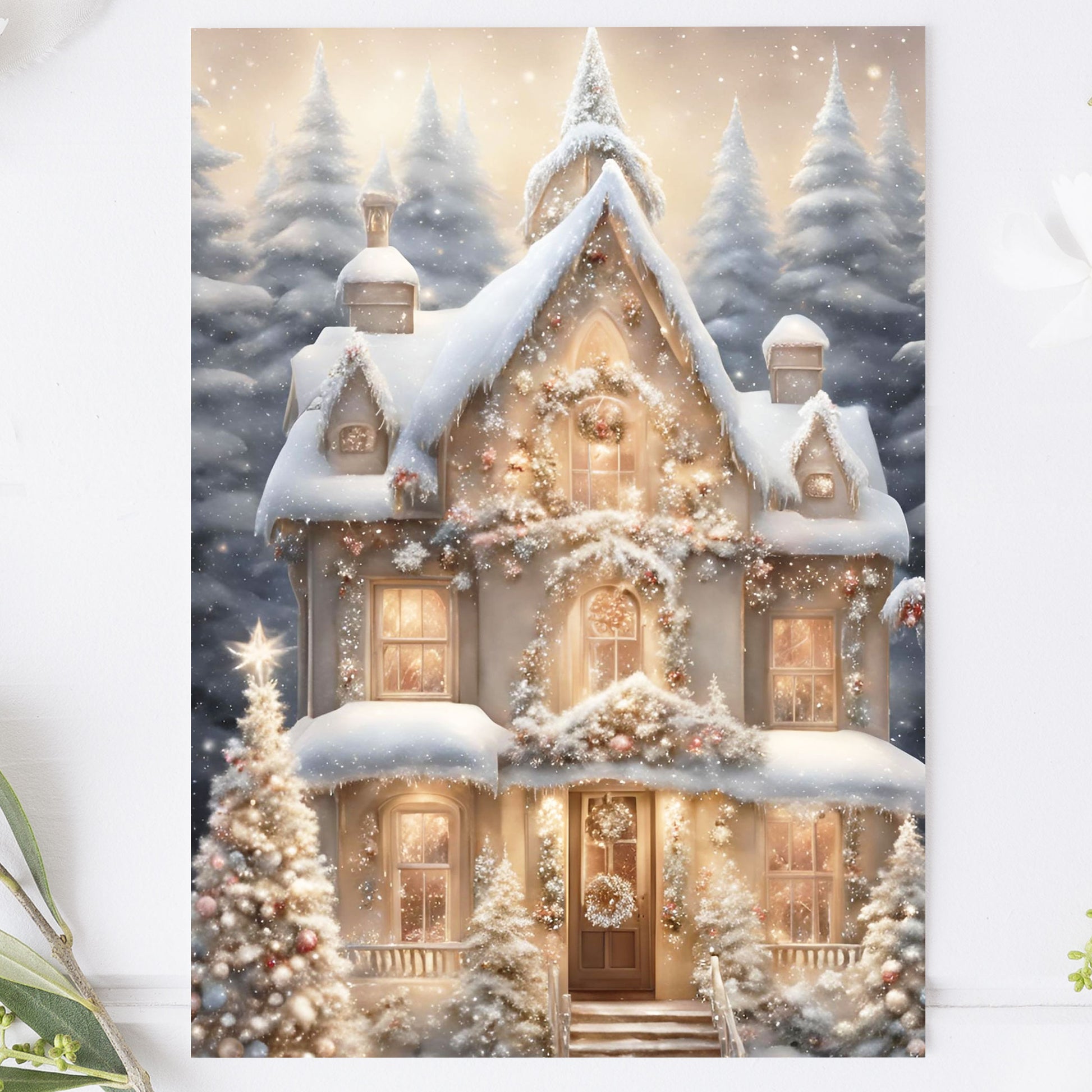 Vykort för postcrossing, scrapbooking & dekoration - Julhus PC619