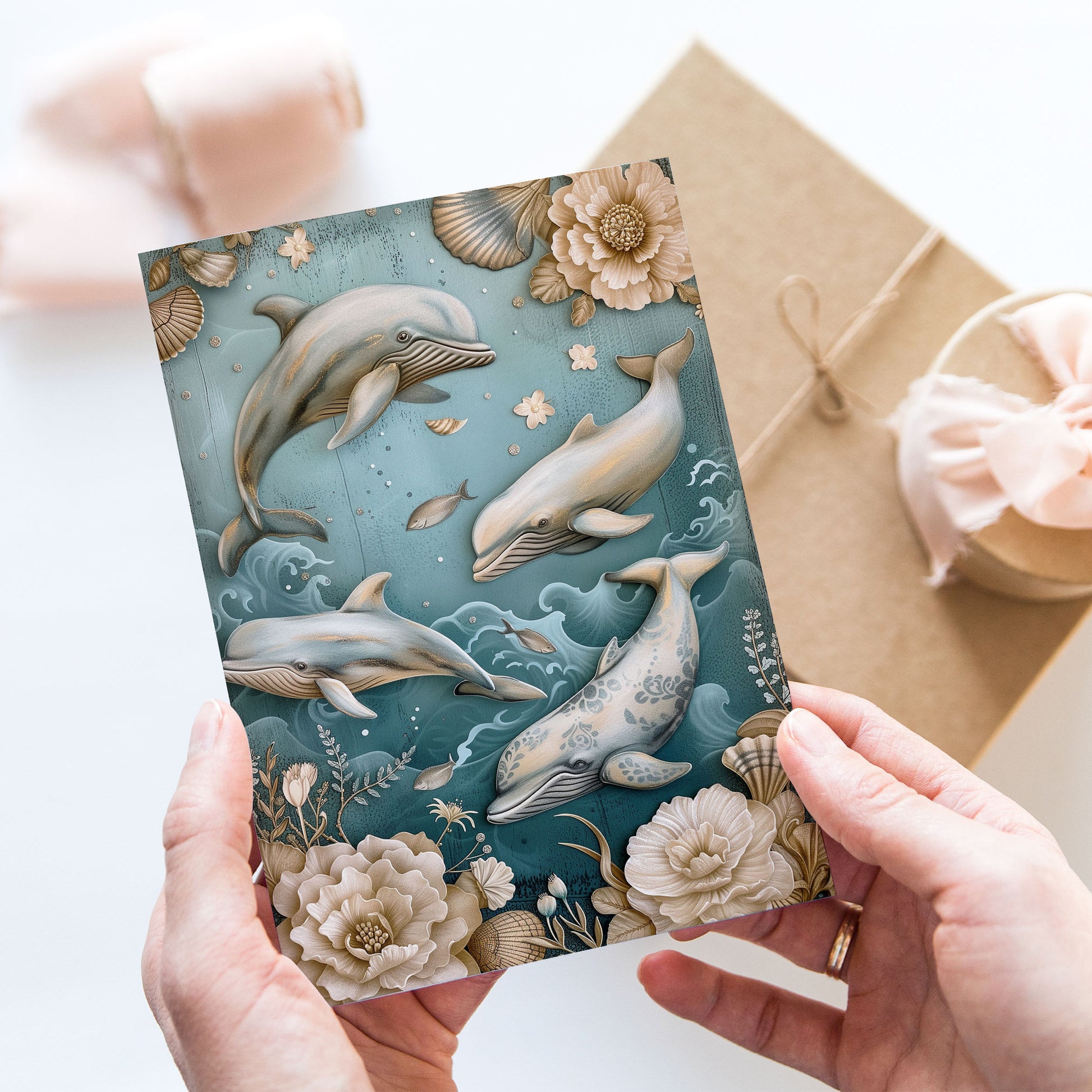 Vykort för postcrossing, scrapbooking & dekoration - Vintage Delfiner PC512