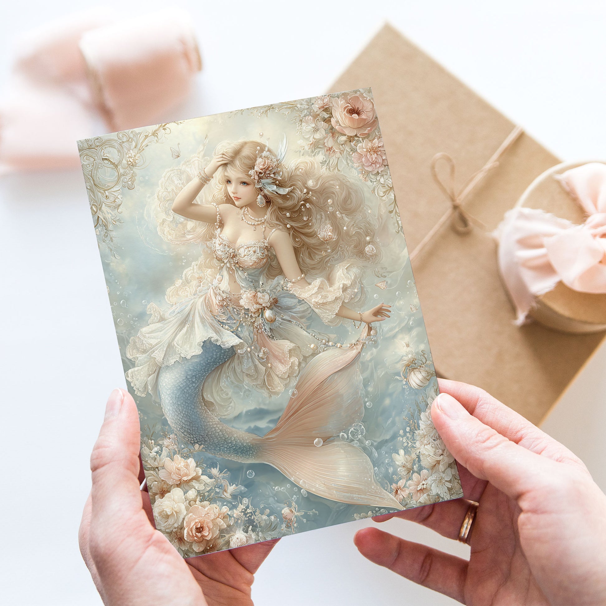 Vykort för postcrossing, scrapbooking & dekoration - Fantasy Sjöjungfru PC656