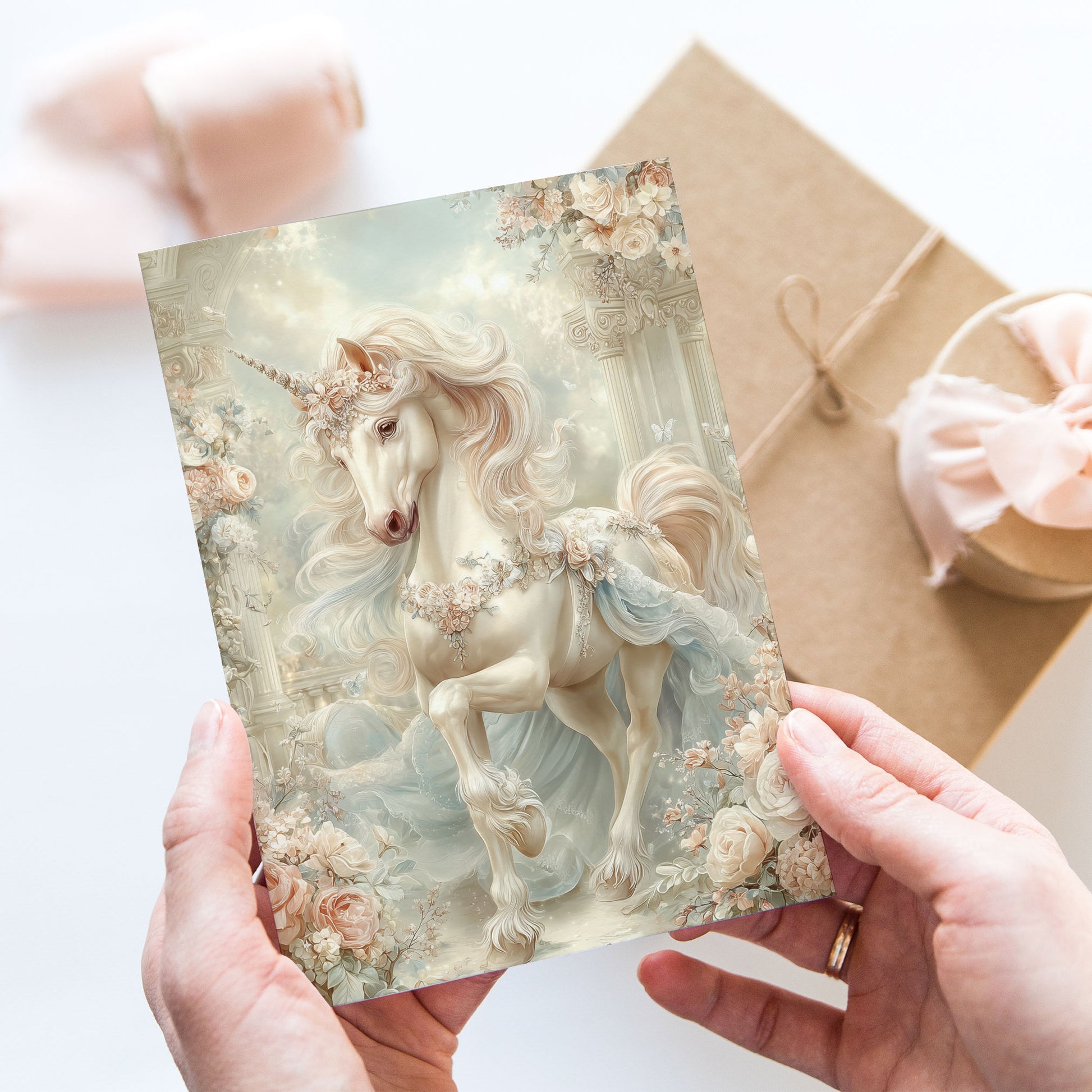 Vykort för postcrossing, scrapbooking & dekoration - Fantasy Enhörning PC657