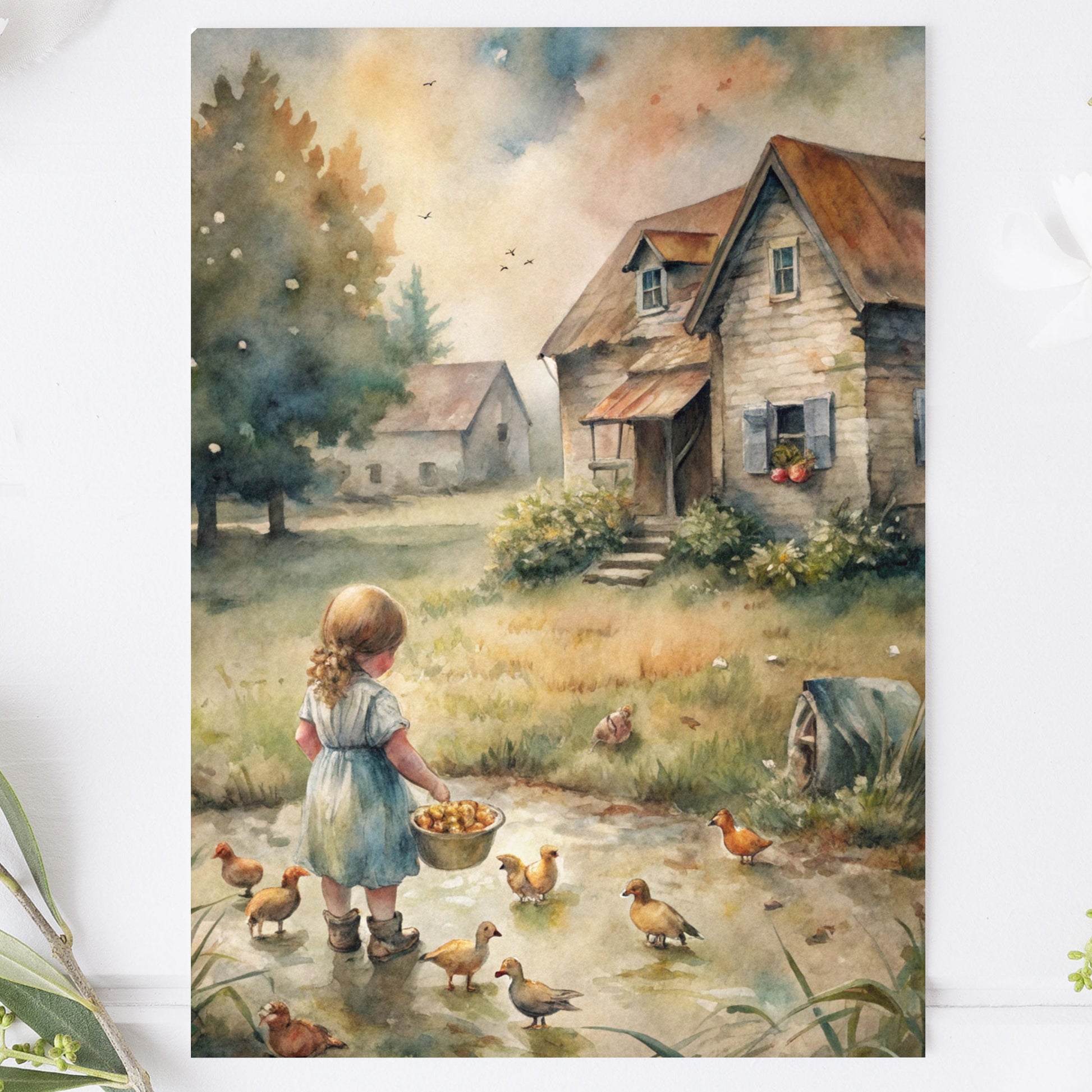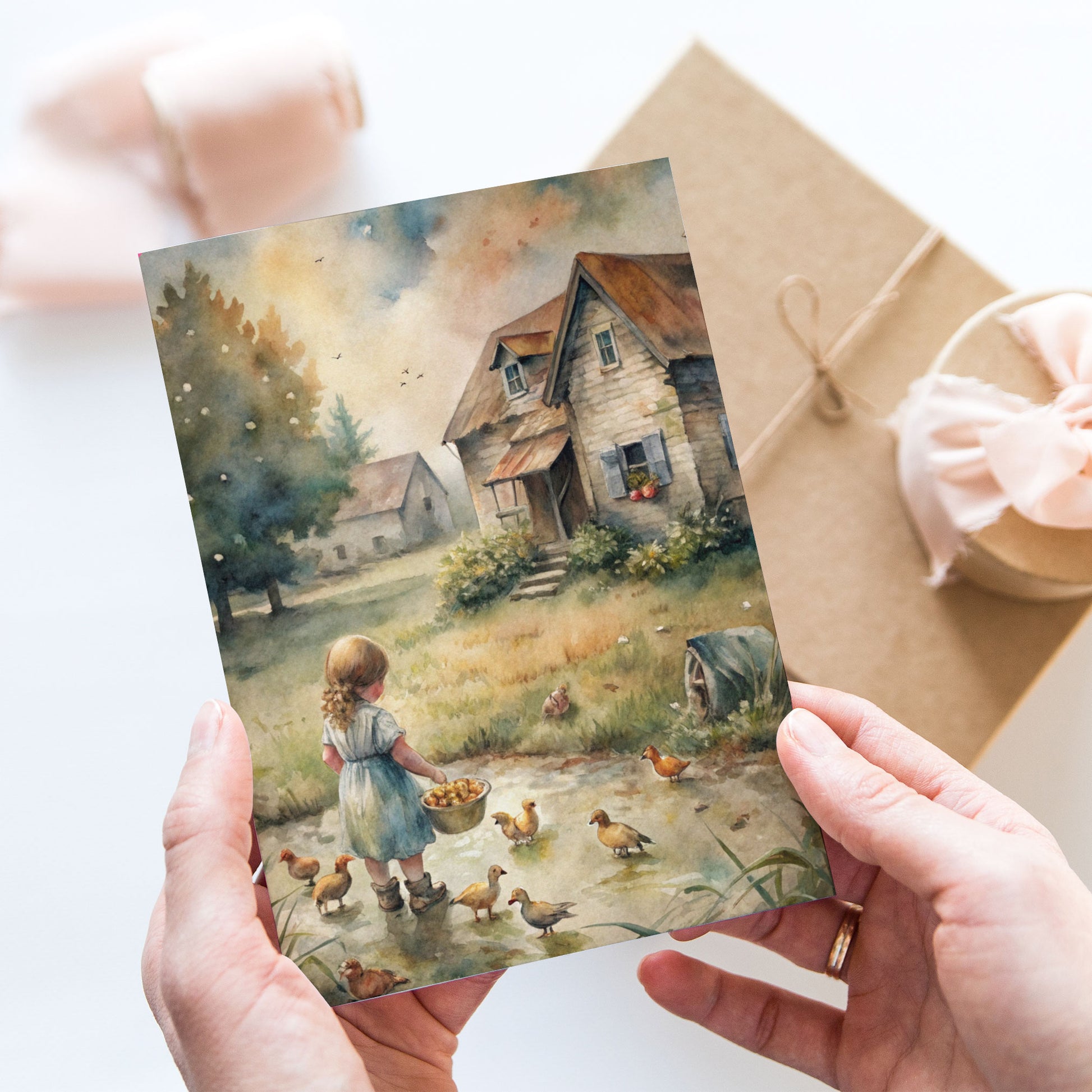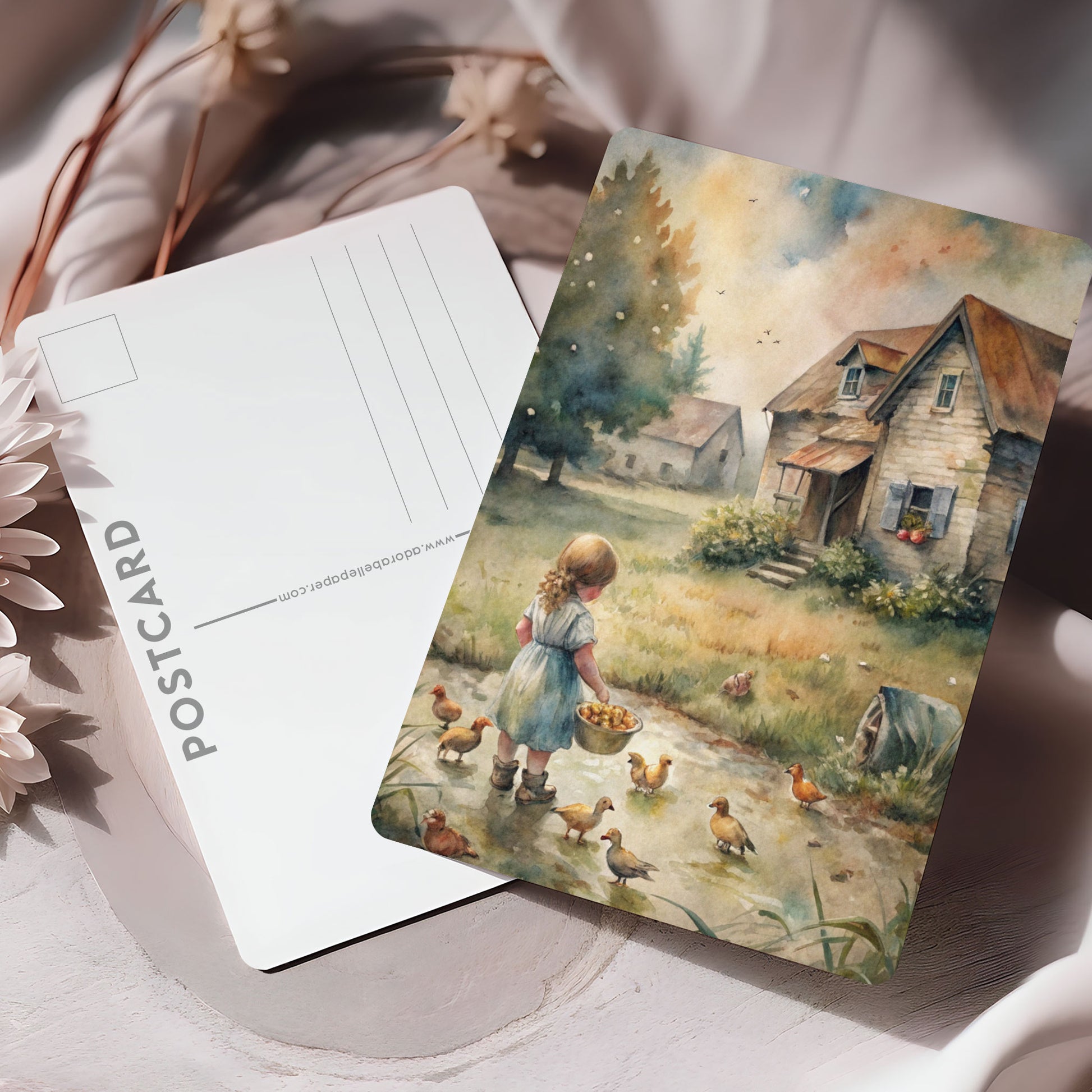 Vykort för postcrossing, scrapbooking & dekoration - Bondgård Flicka PC648