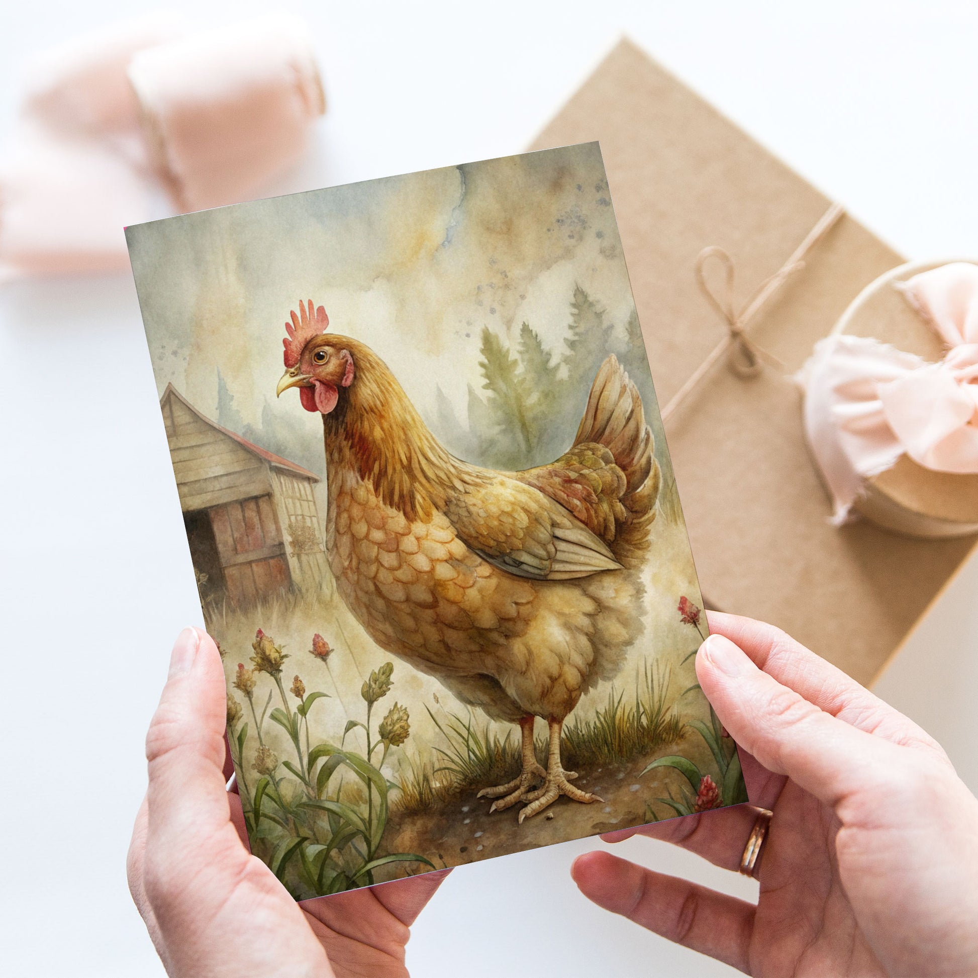 Vykort för postcrossing, scrapbooking & dekoration - Bondgård Höna 2 PC650