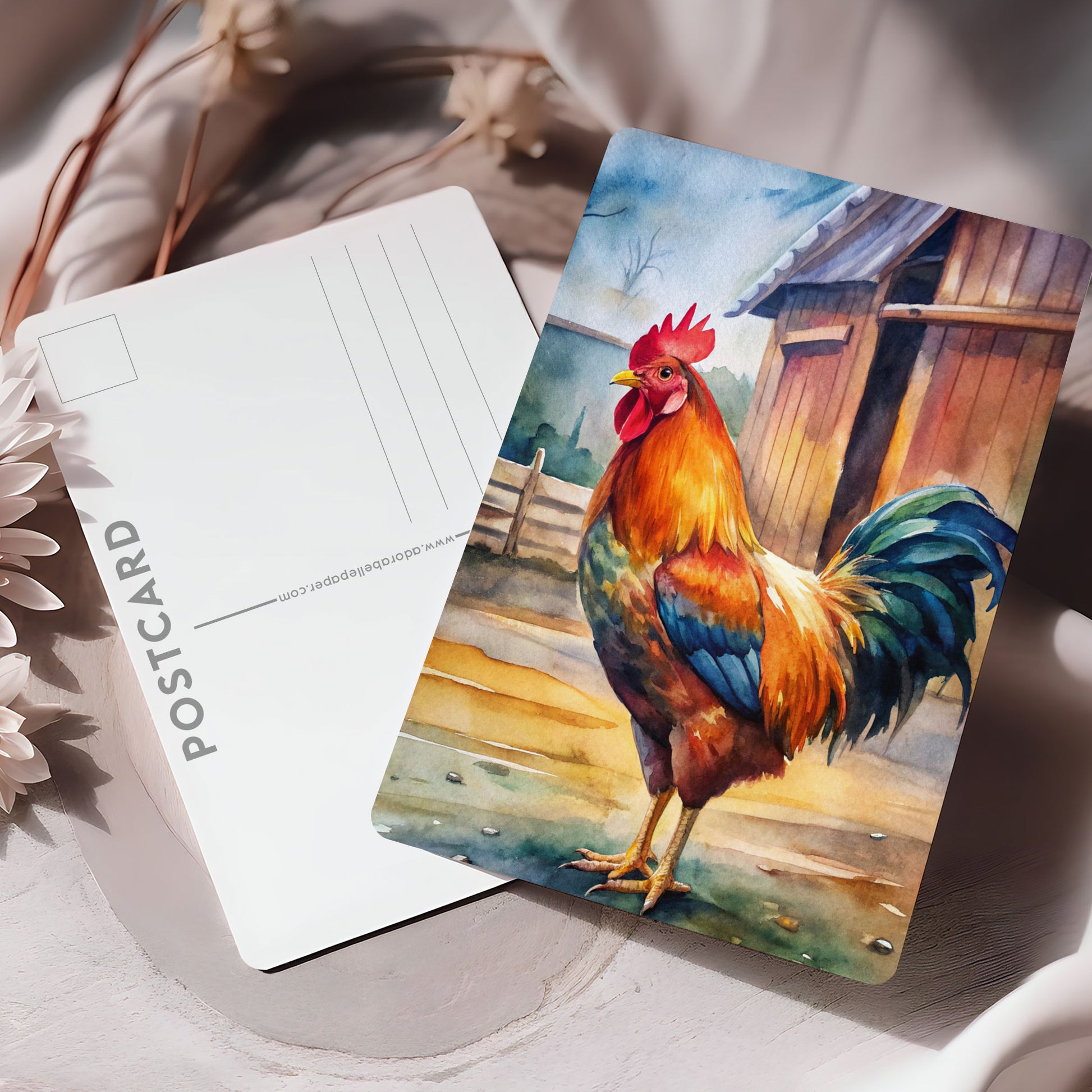 Vykort för postcrossing, scrapbooking & dekoration - Bondgård Tupp PC646