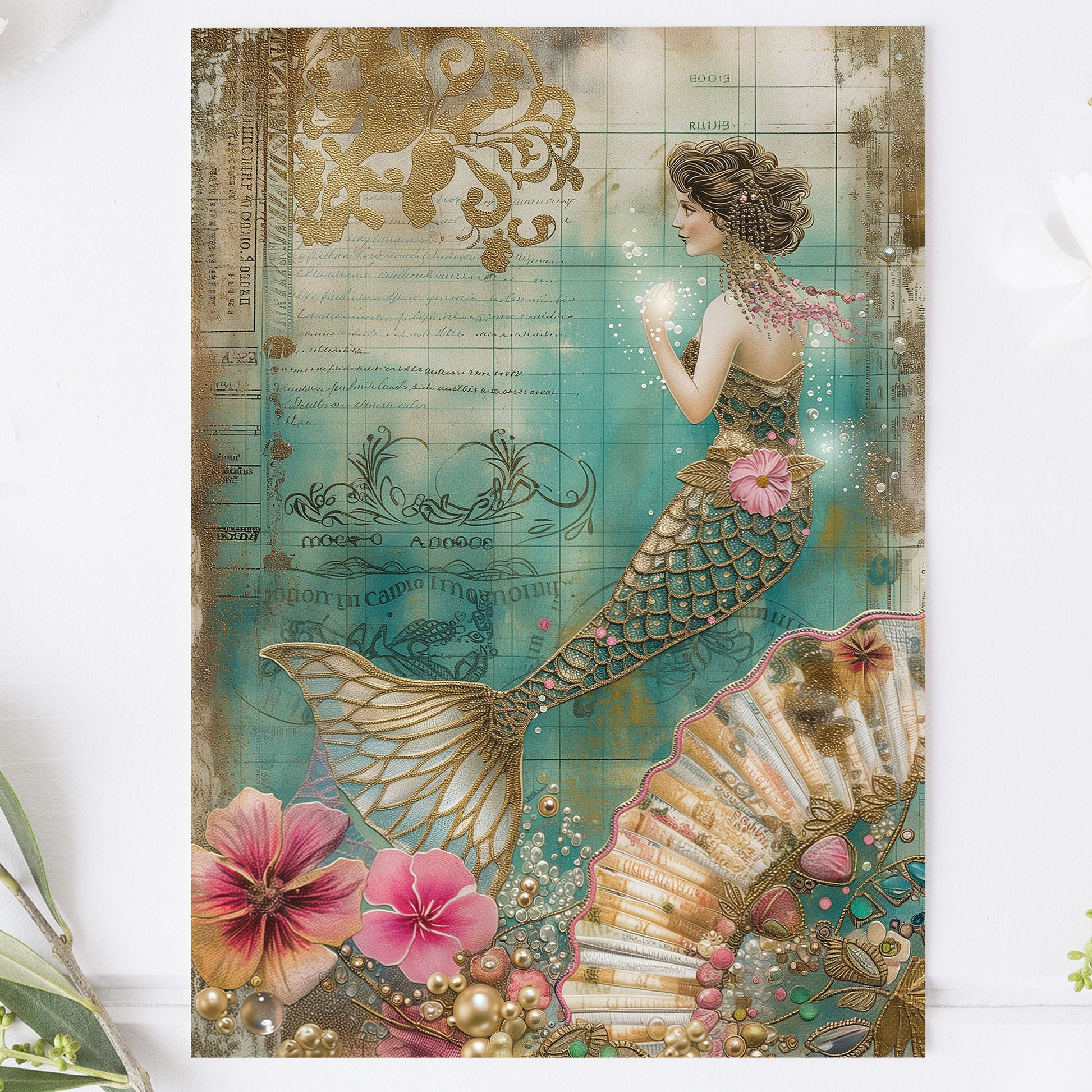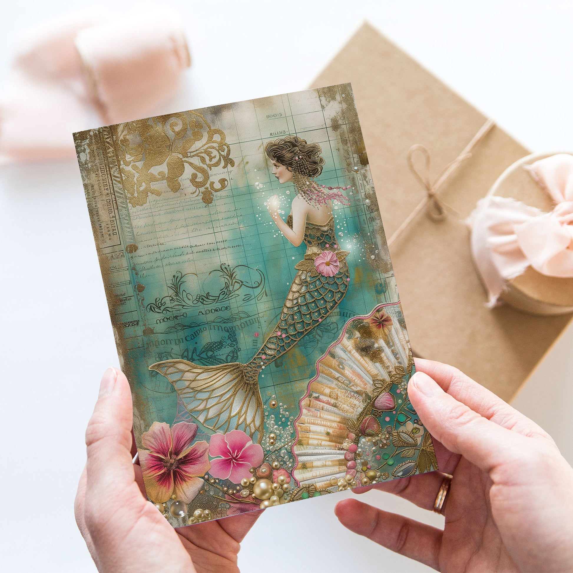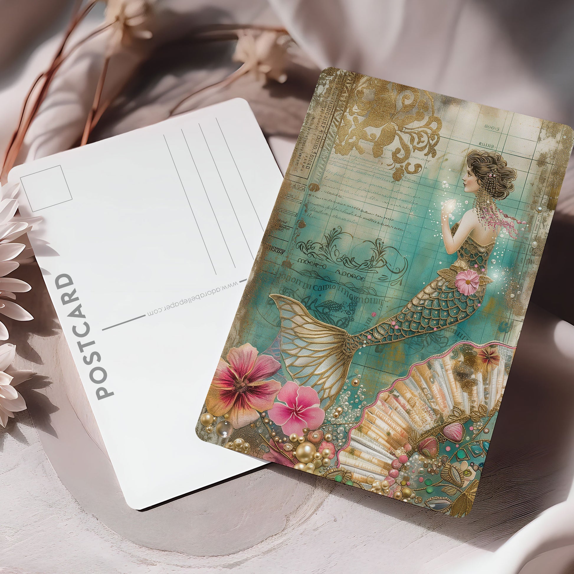 Vykort för postcrossing, scrapbooking & dekoration - Gyllene Sjöjungfru PC522