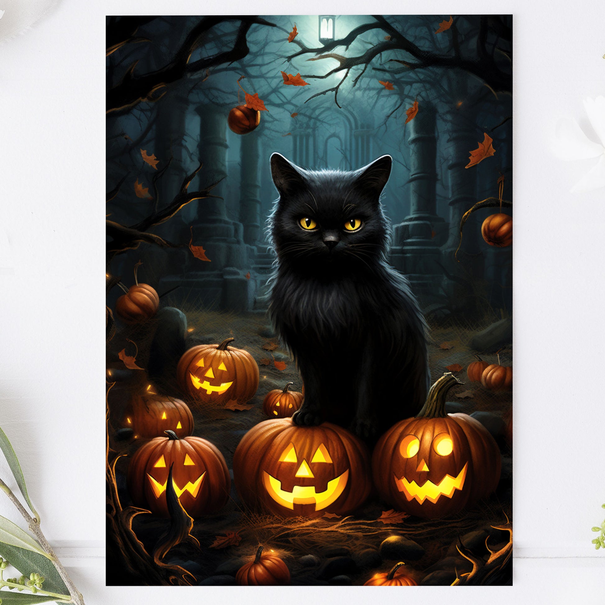 Vykort för postcrossing, scrapbooking & dekoration - Halloween - Katt PC560
