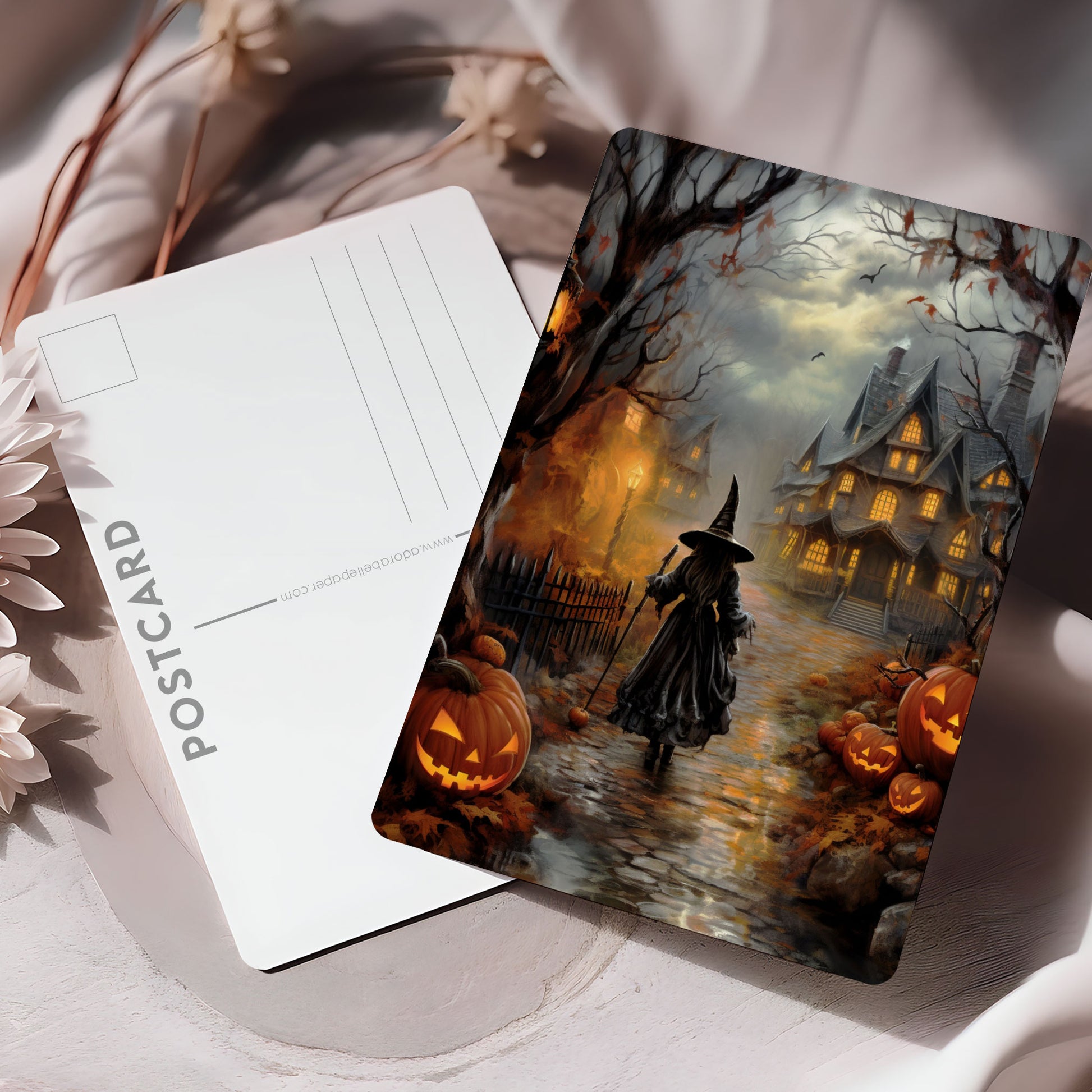 Vykort för postcrossing, scrapbooking & dekoration - Halloween - Häxa PC550