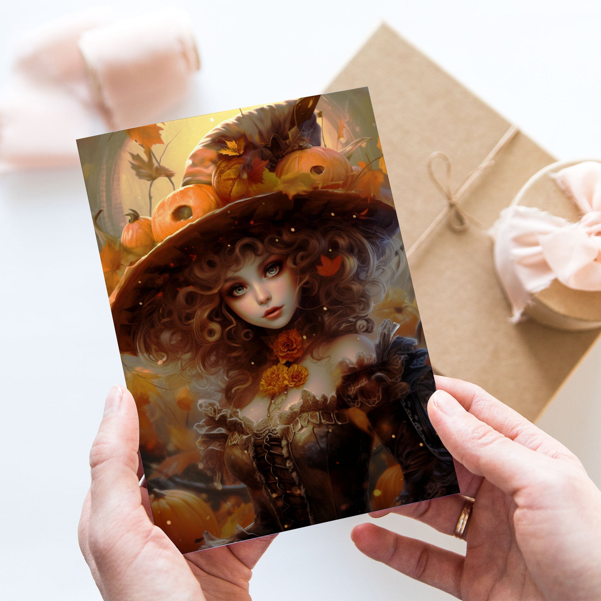 Vykort för postcrossing, scrapbooking & dekoration - Halloween - Vacker Häxa PC557