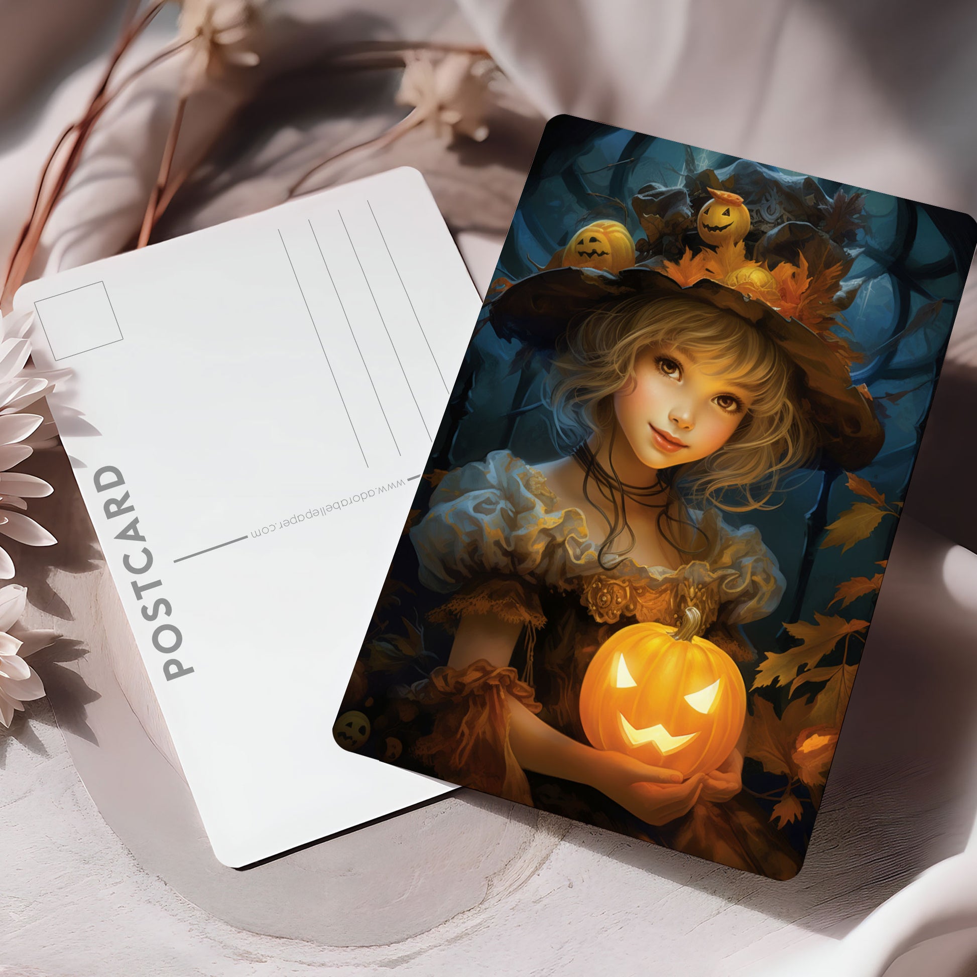 Vykort för postcrossing, scrapbooking & dekoration - Halloween - Söt Häxa PC561