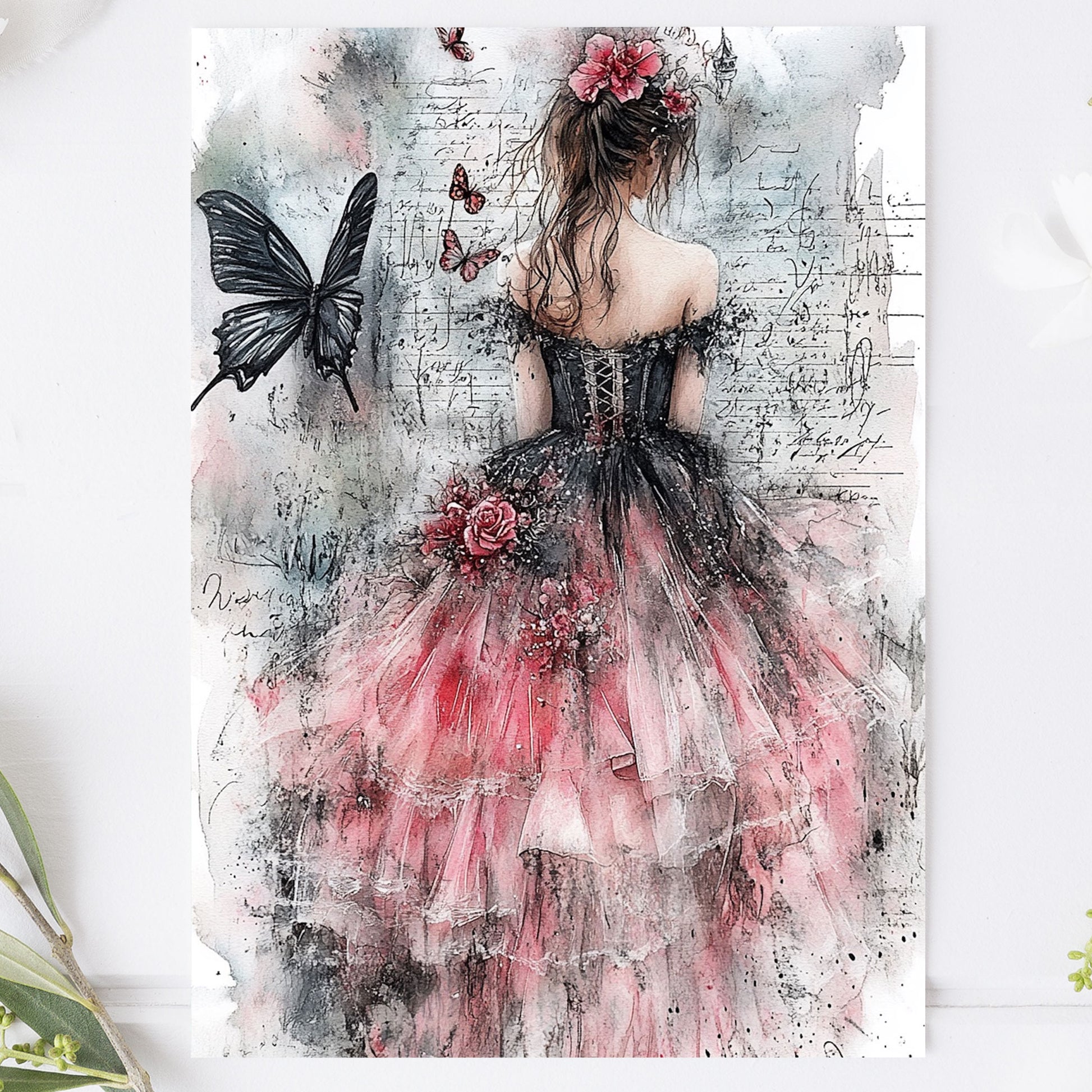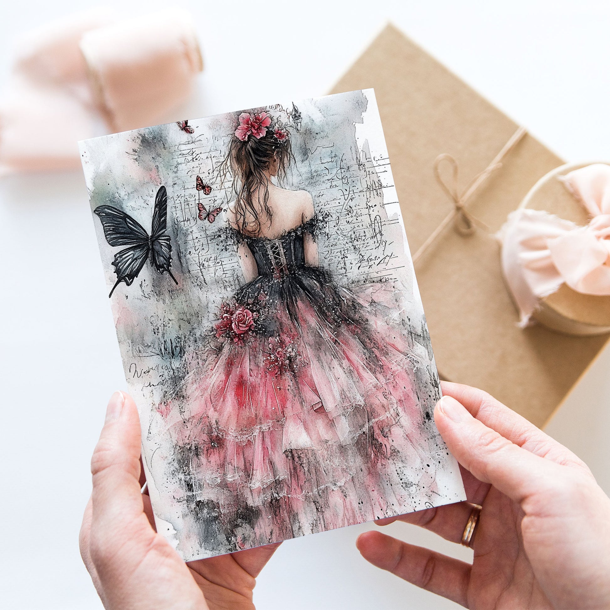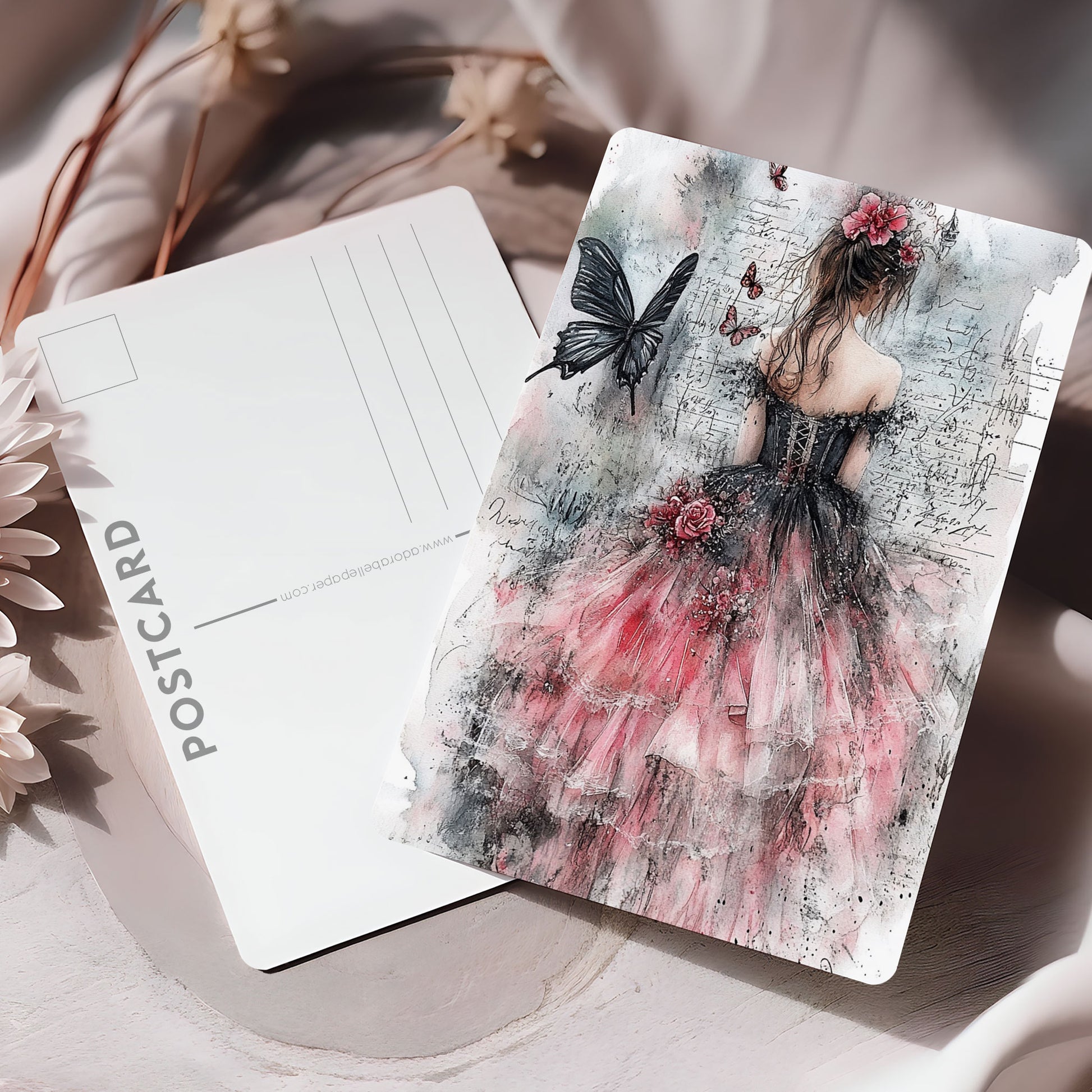 Vykort för postcrossing, scrapbooking & dekoration - Mörk Romantik - Svart Fjäril PC601