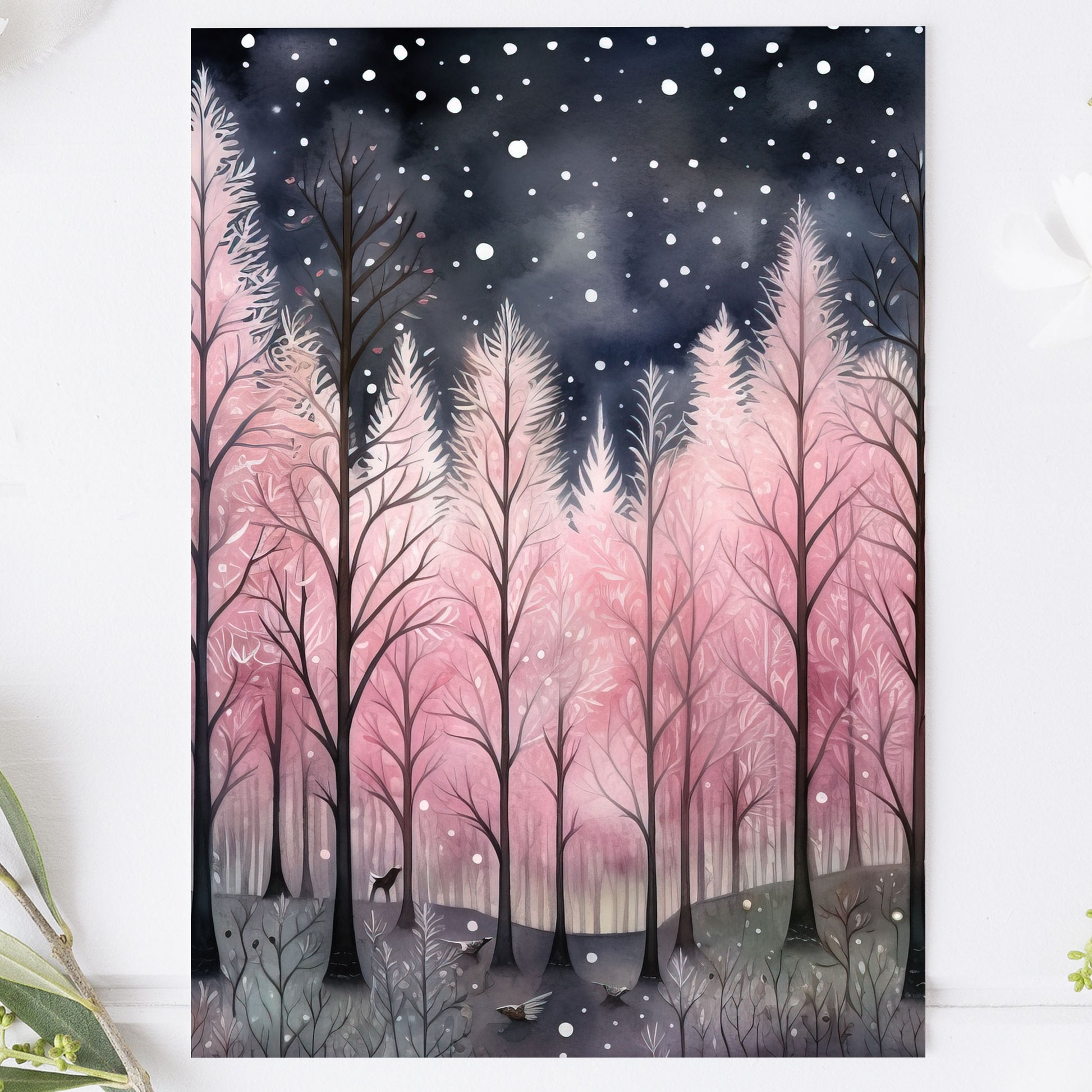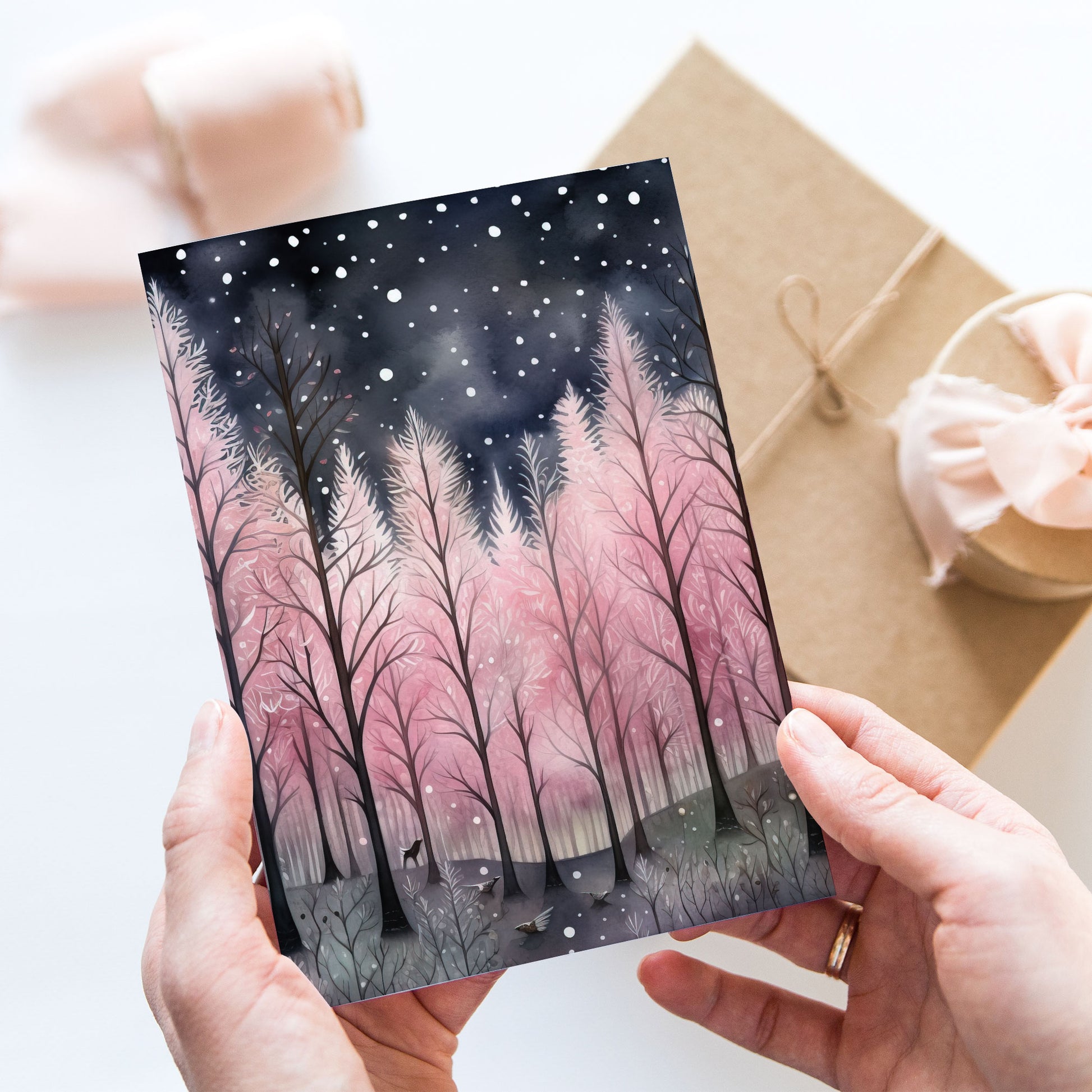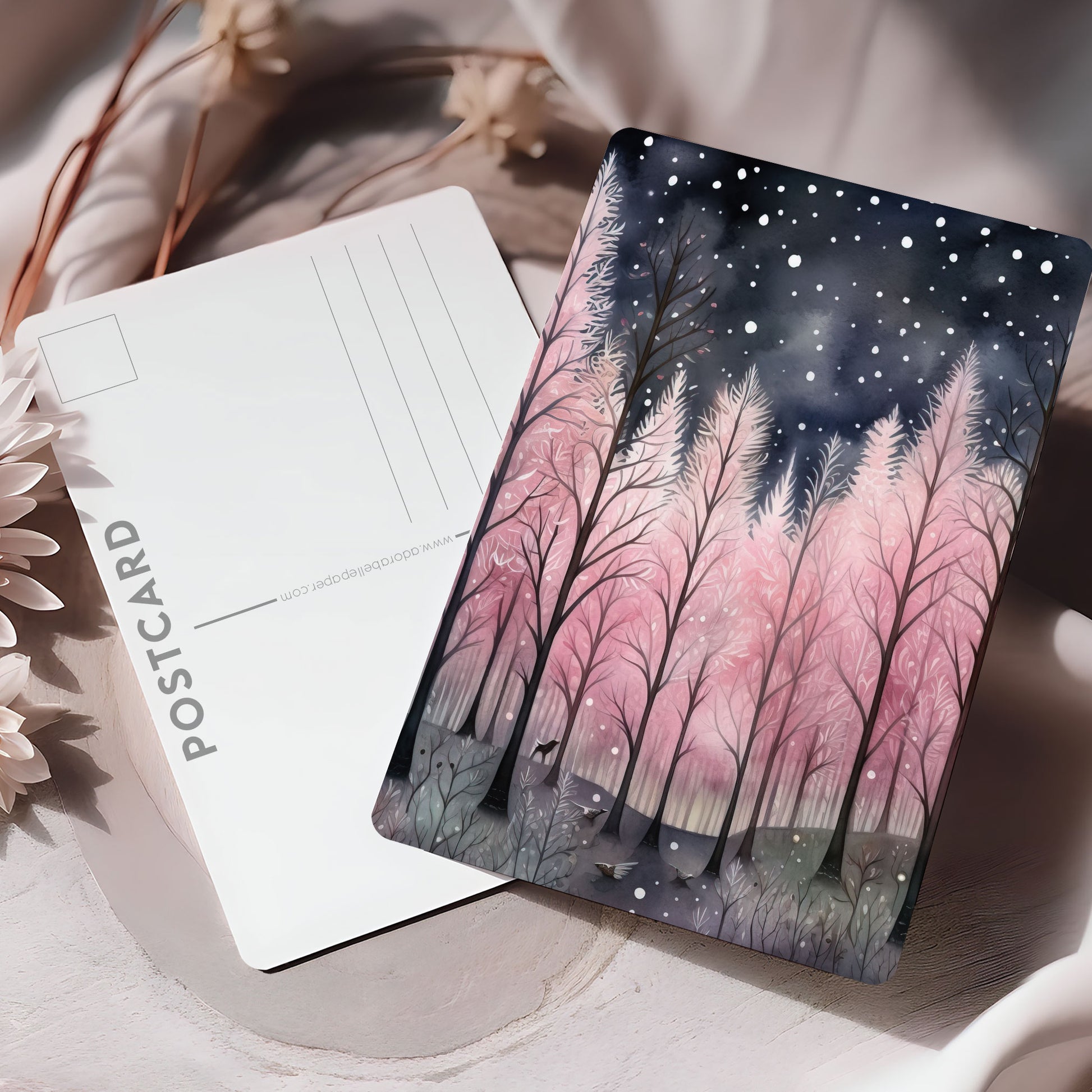 Vykort för postcrossing, scrapbooking & dekoration - Rosa Skog PC615