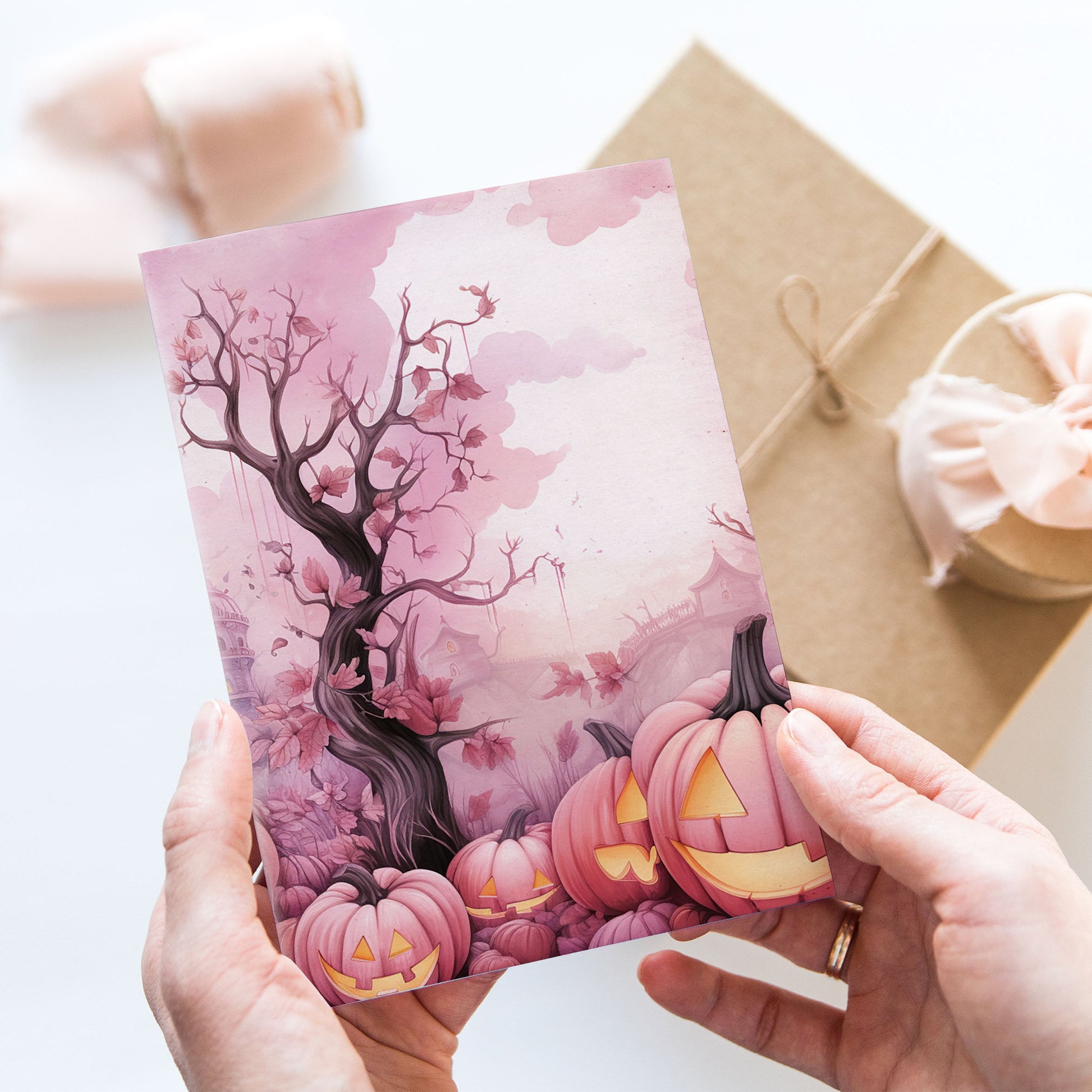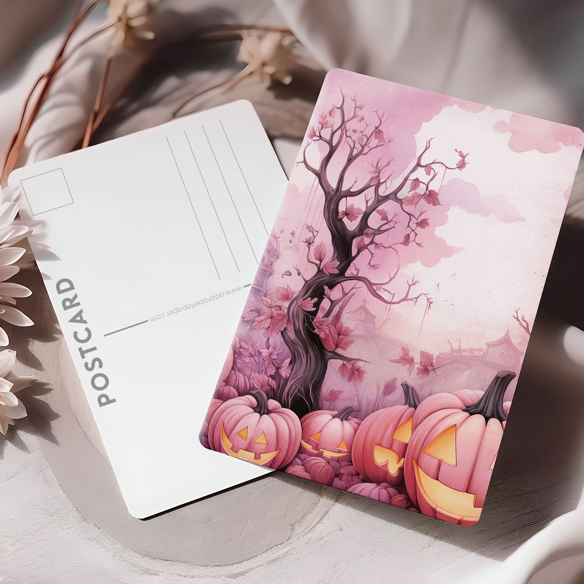 Vykort för postcrossing, scrapbooking & dekoration - Rosa Halloween PC543