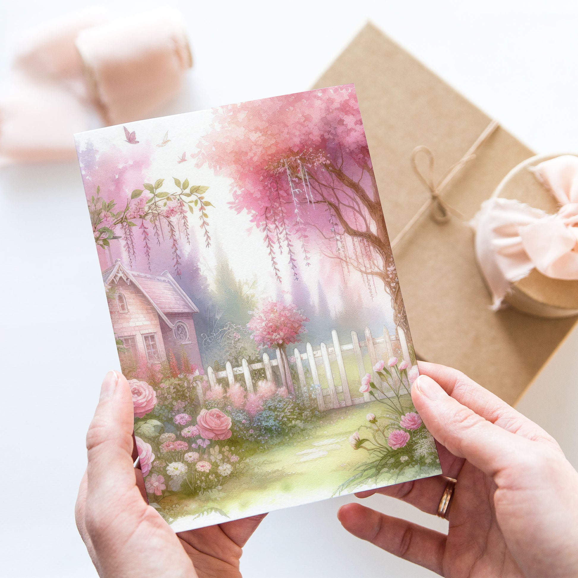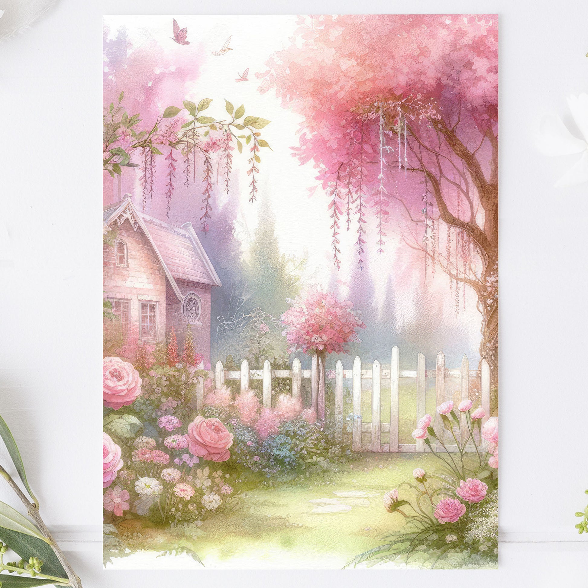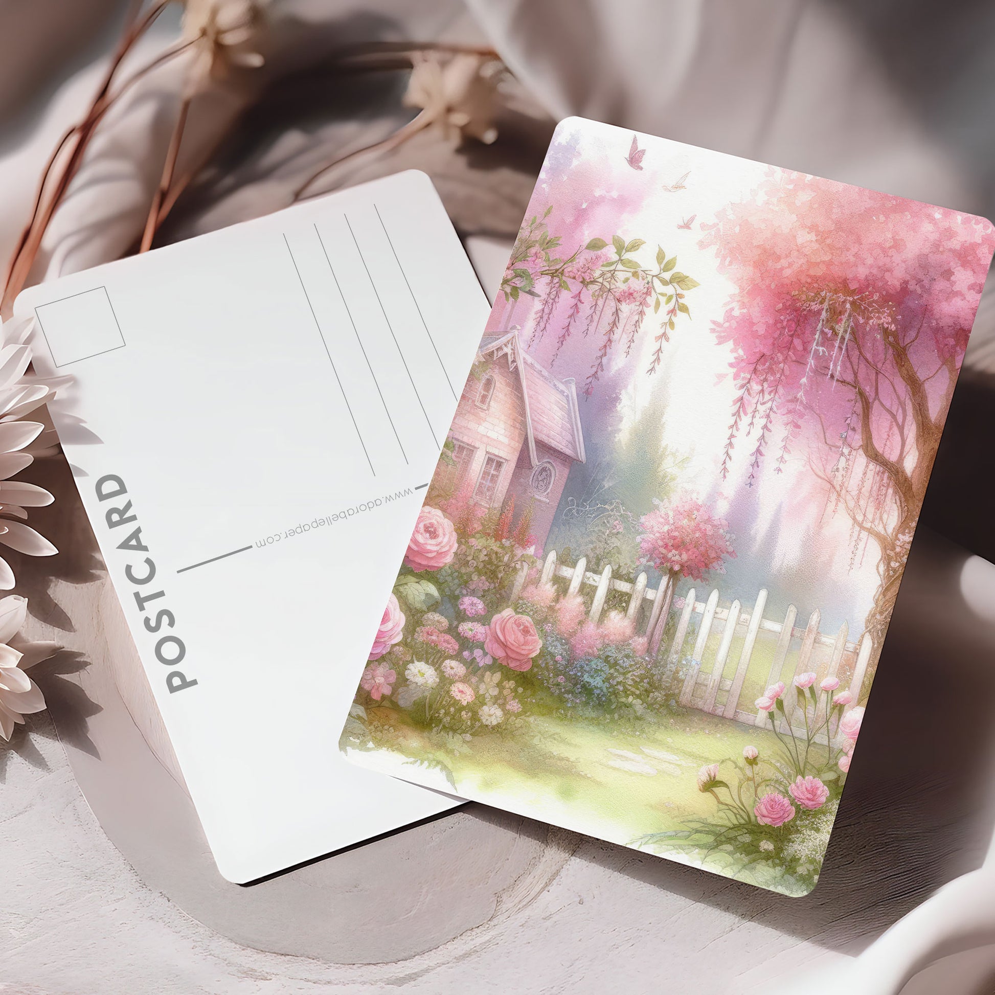 Vykort för postcrossing, scrapbooking & dekoration - Rosa Romantiskt Trädgård PC505