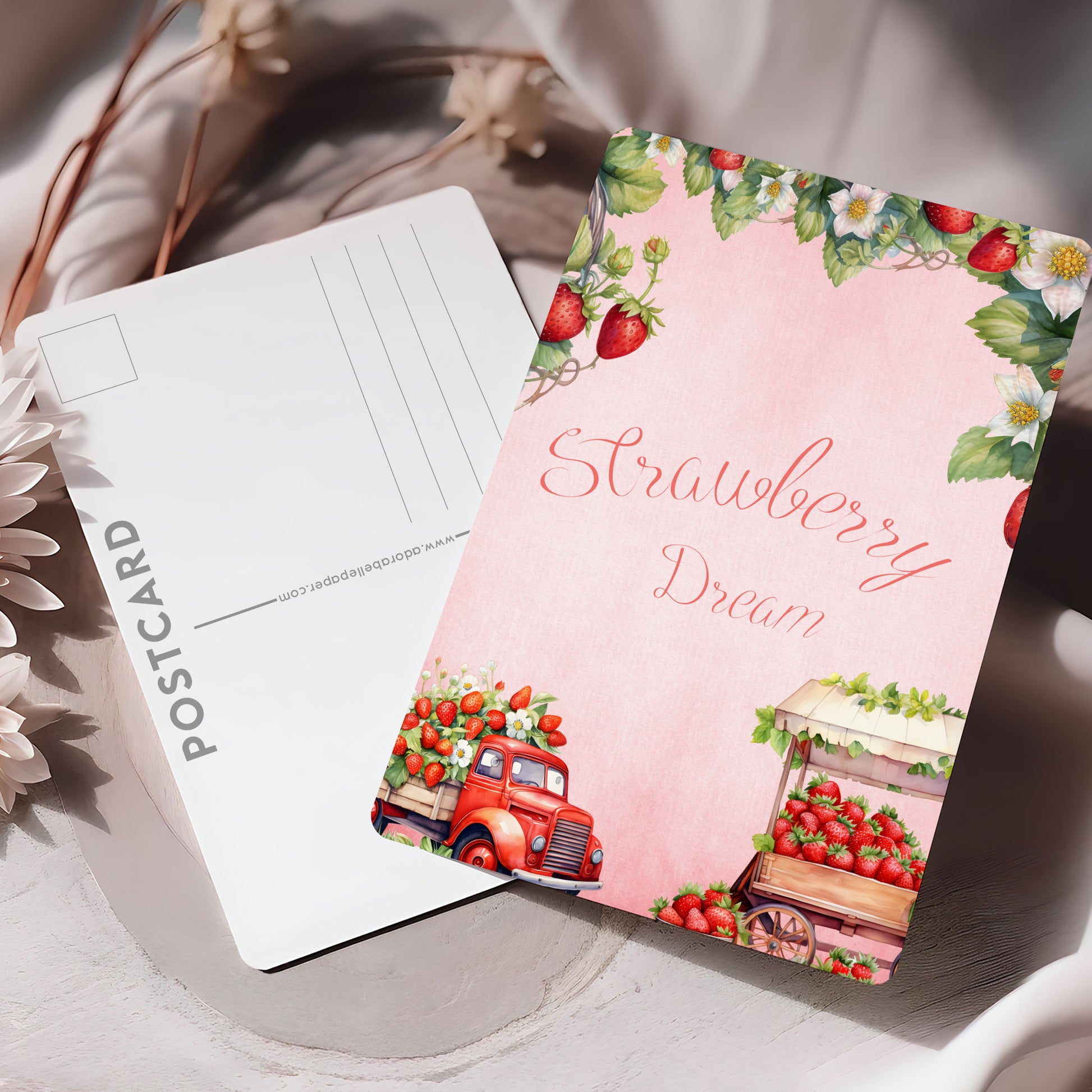 Vykort för postcrossing, scrapbooking & dekoration - Strawberry Dreams PC627