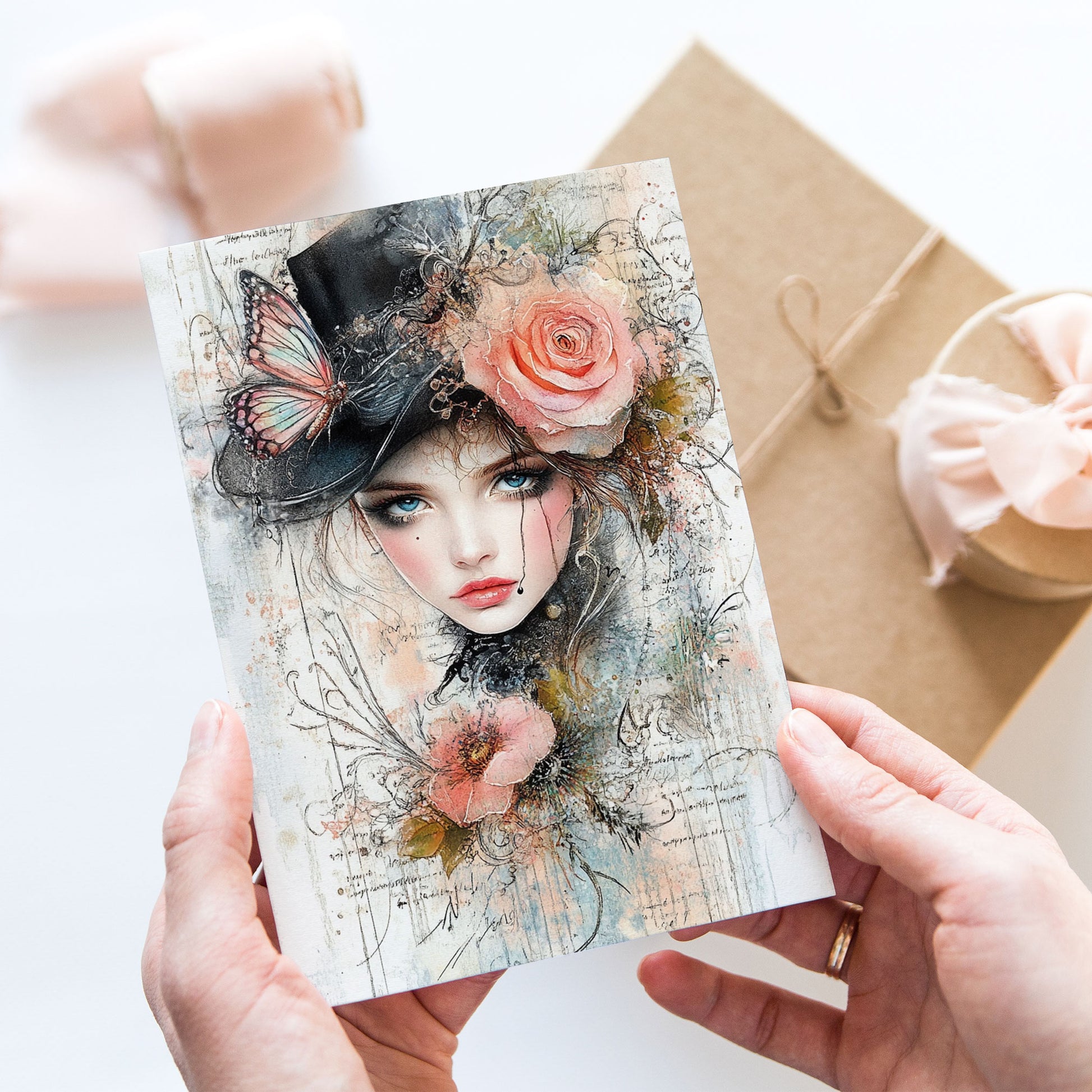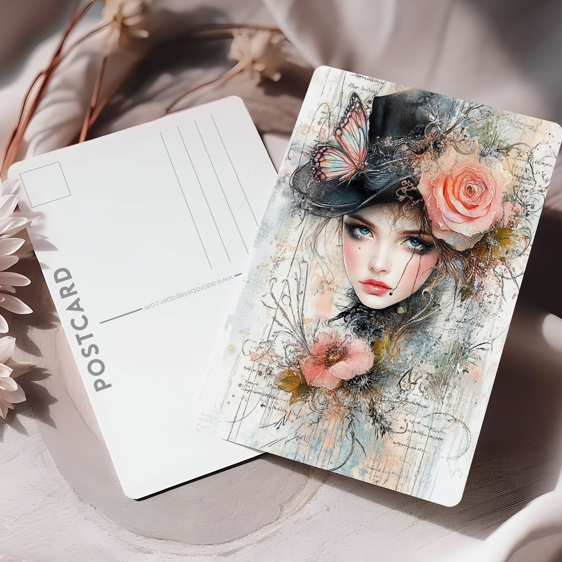 Vykort för postcrossing, scrapbooking & dekoration - Viktoriansk Tjej PC607