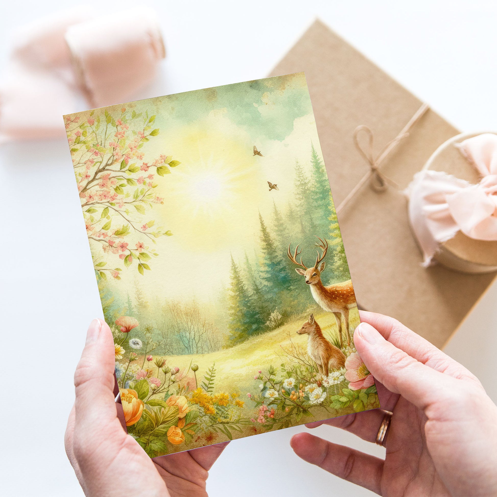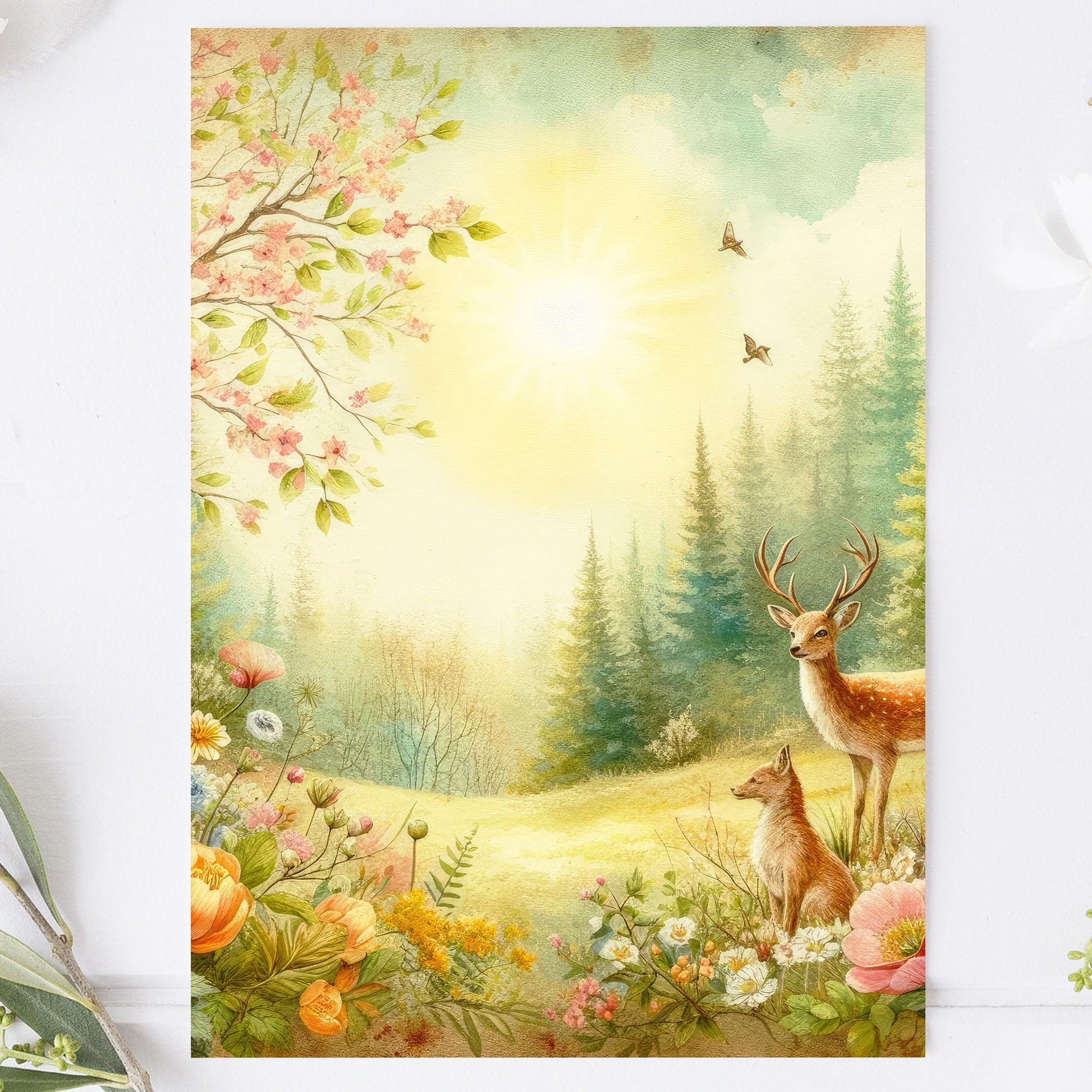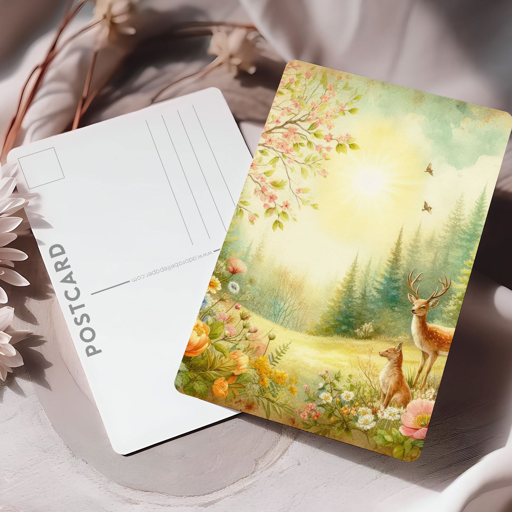 Vykort för postcrossing, scrapbooking & dekoration - Vintage Skogstema PC530