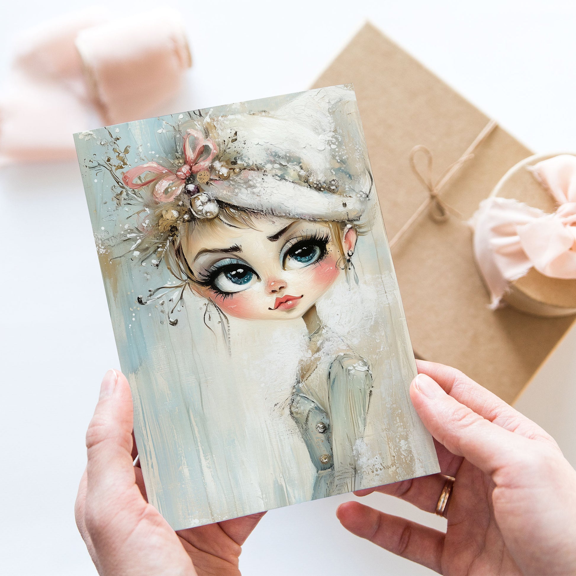 Vykort för postcrossing, scrapbooking & dekoration - Whimsical Flicka Retrostil PC595