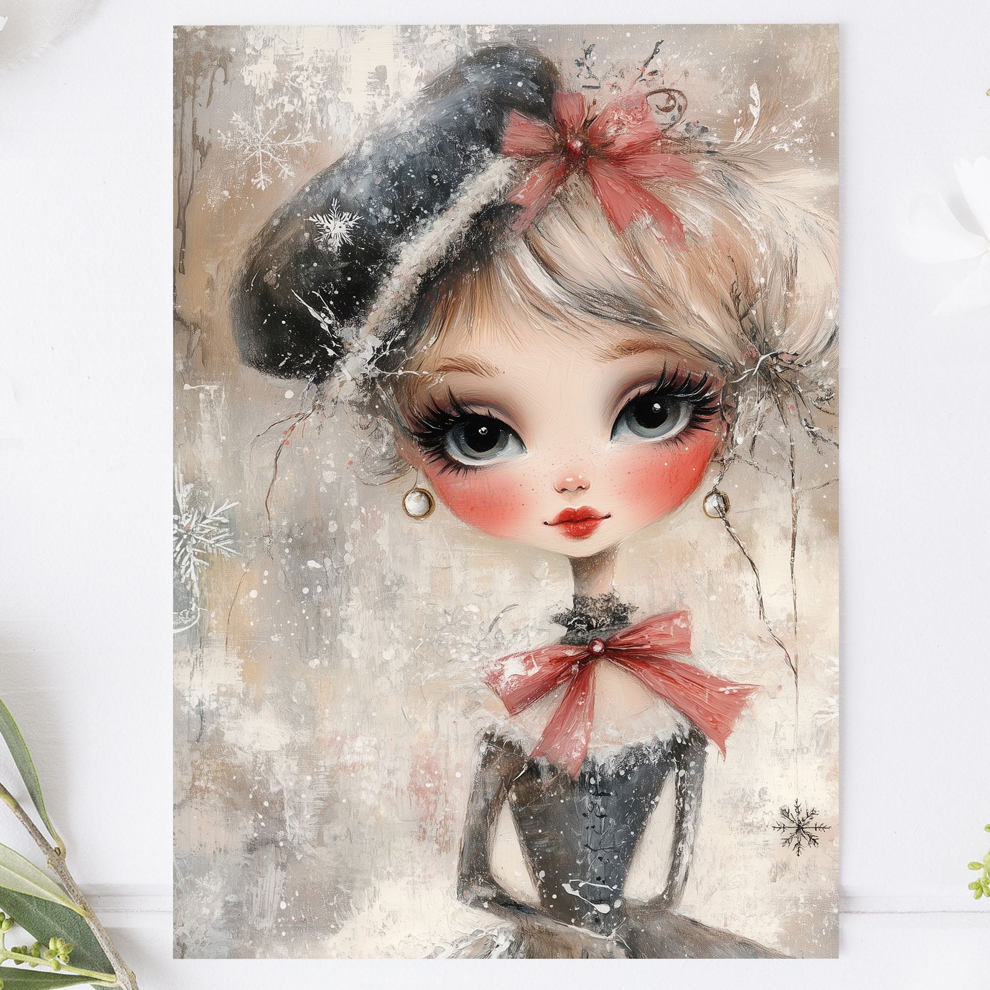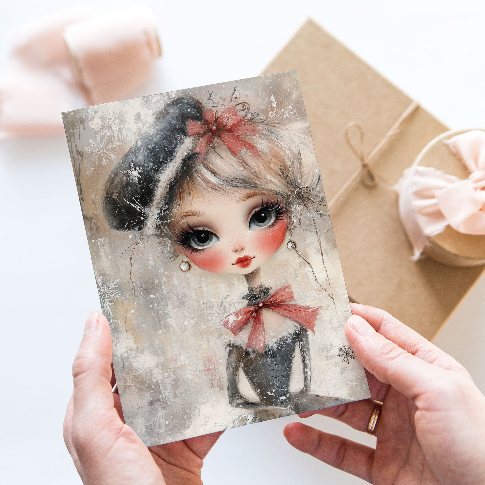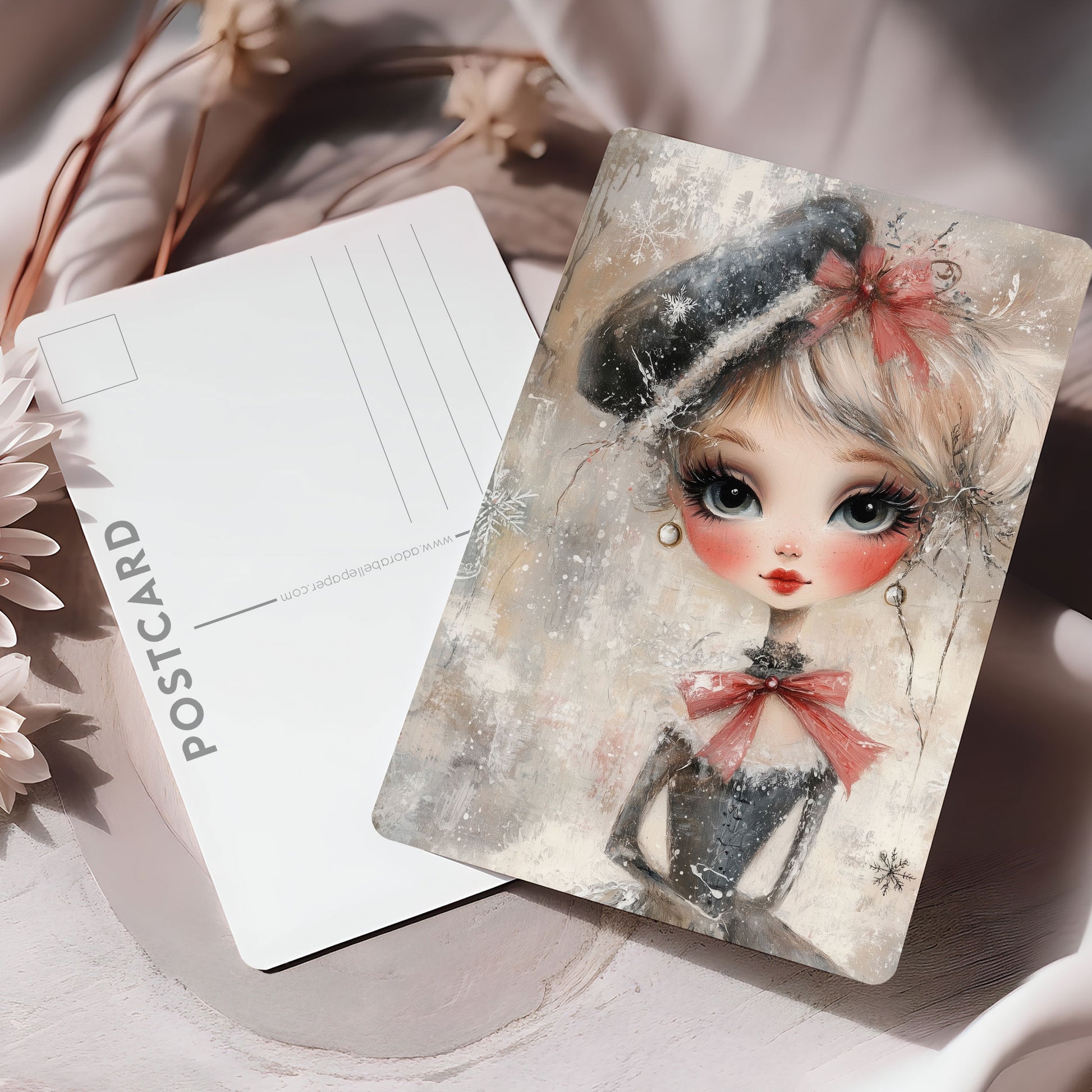 Vykort för postcrossing, scrapbooking & dekoration - Whimsical Flicka Retrostil PC598