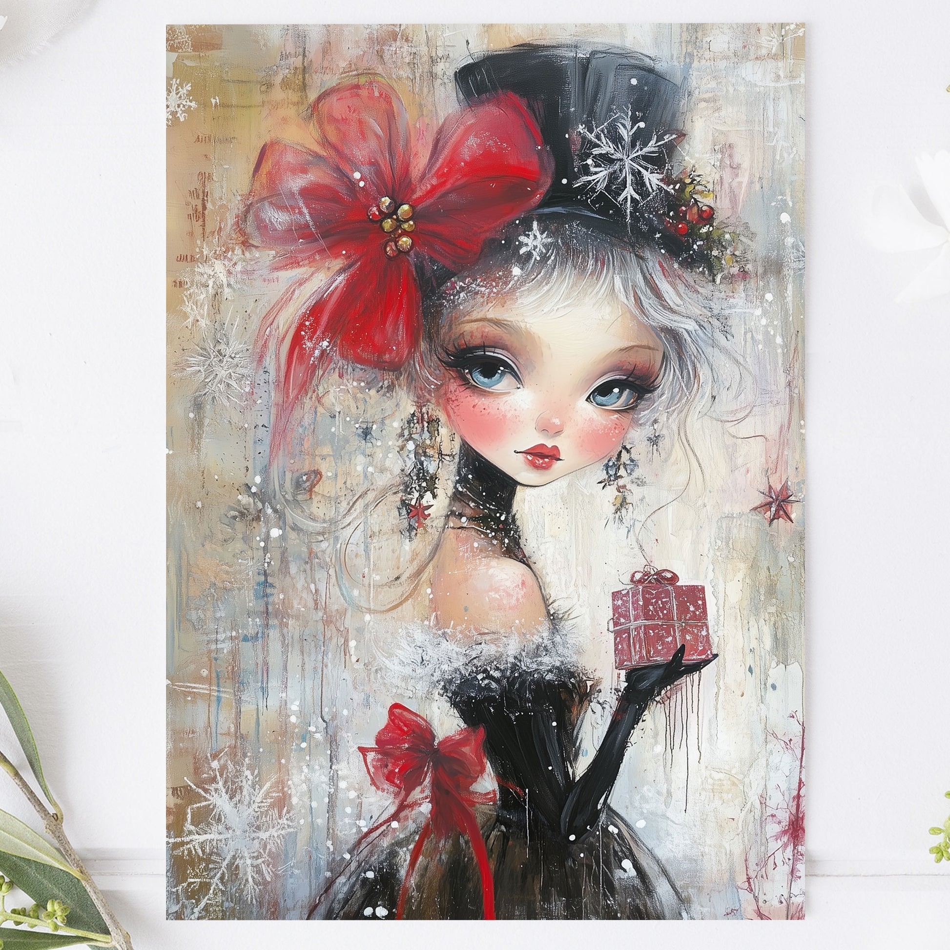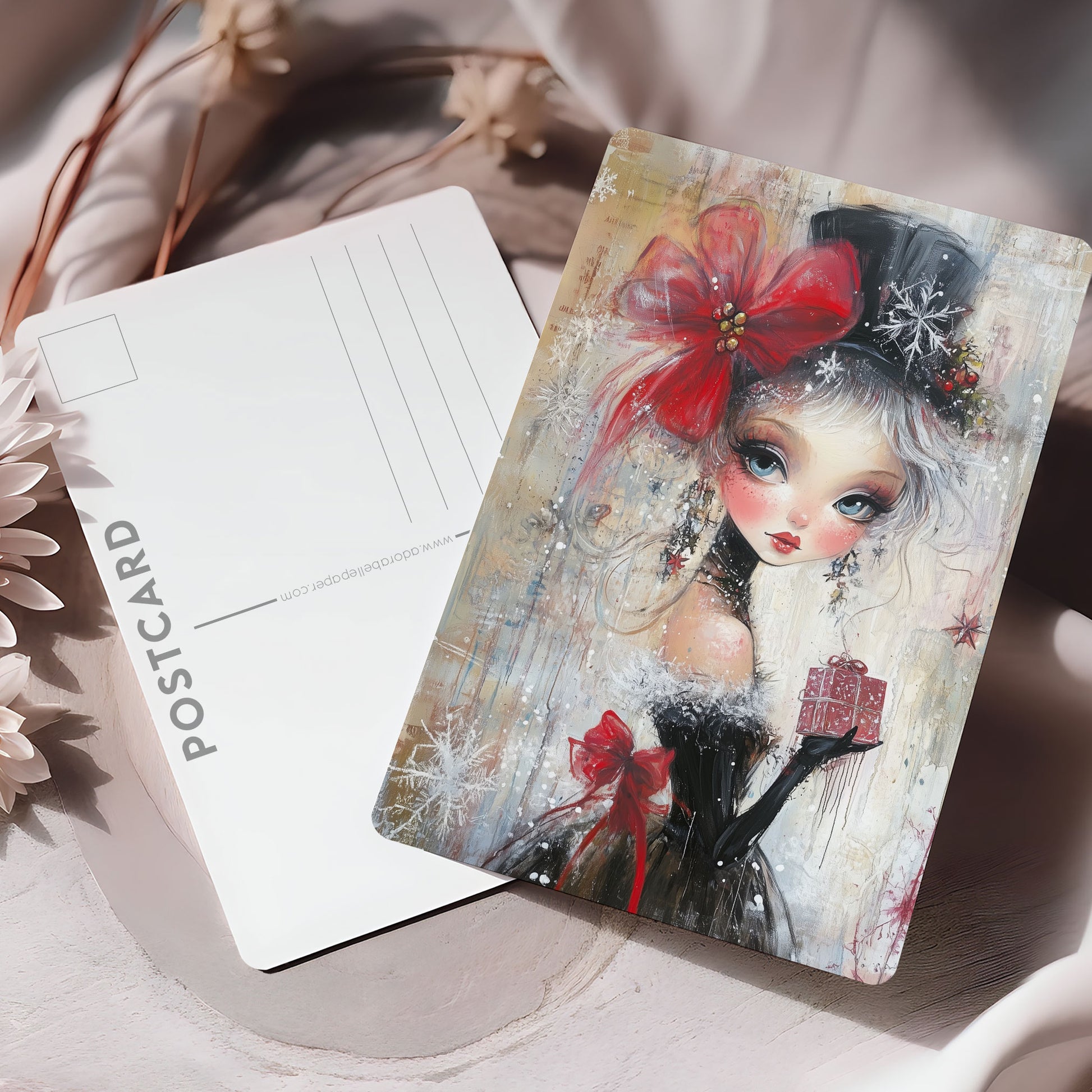 Vykort för postcrossing, scrapbooking & dekoration - Whimsical Vintrig Flicka Retrostil PC600