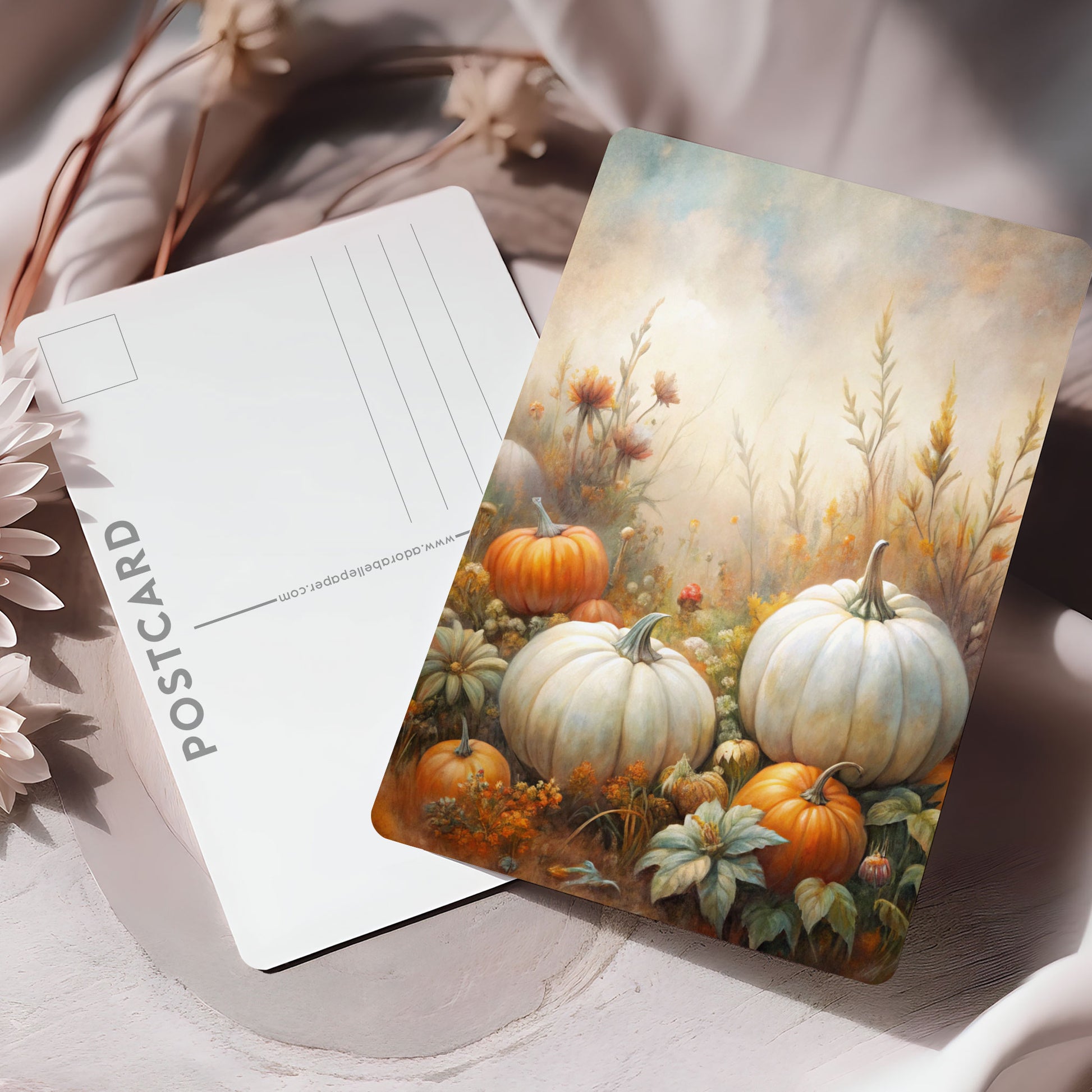 Vykort för postcrossing, scrapbooking & dekoration - Vita pumpor PC633