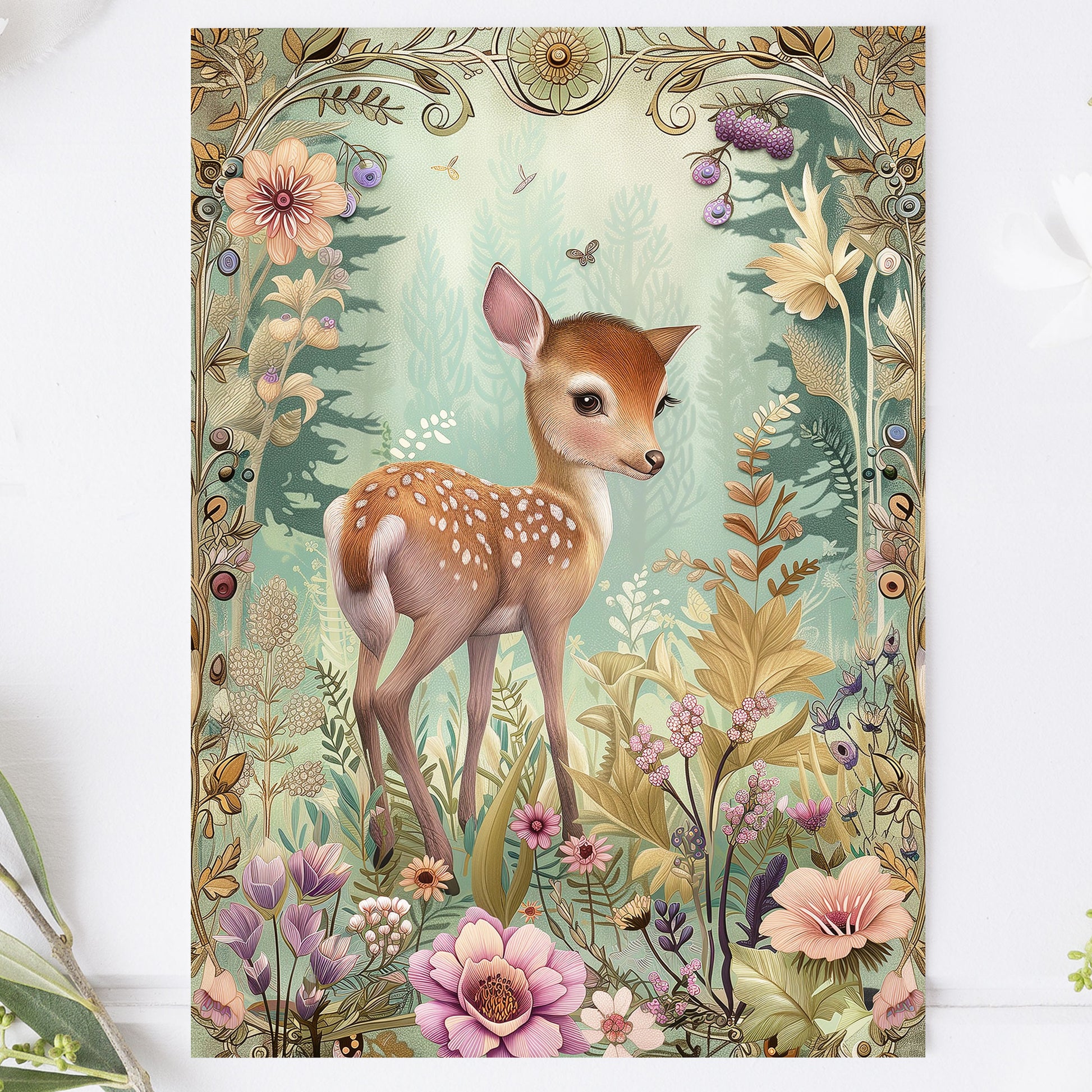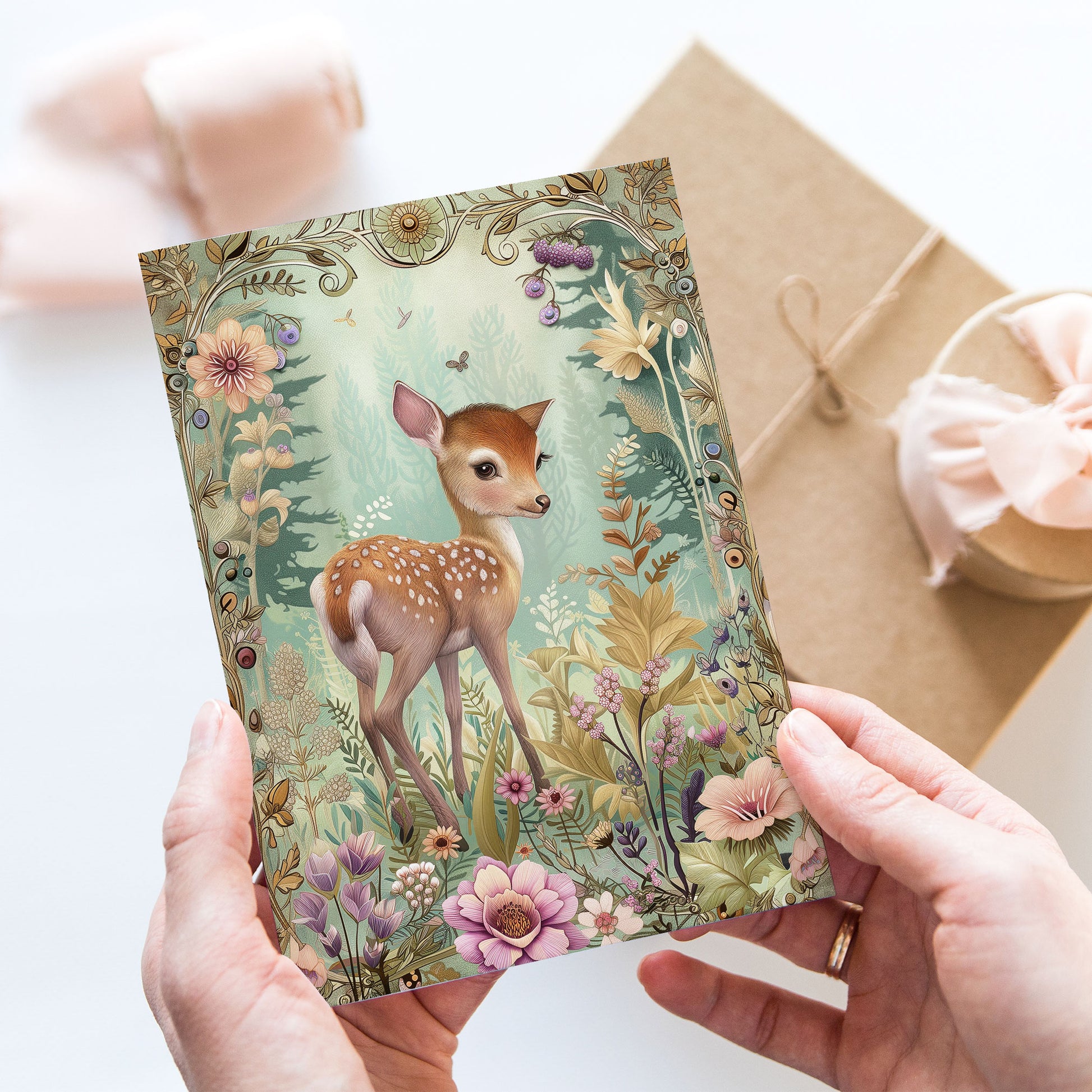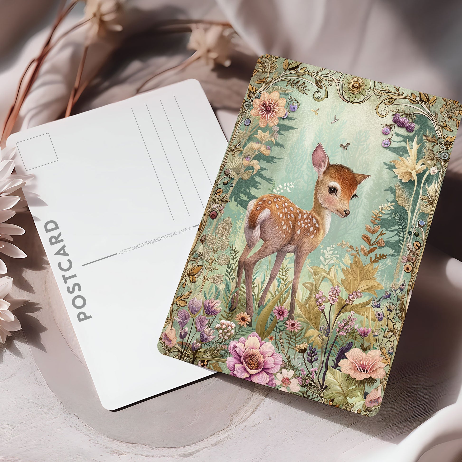 Vykort för postcrossing, scrapbooking & dekoration - Skogsmotiv Woodland - Rådjur PC533